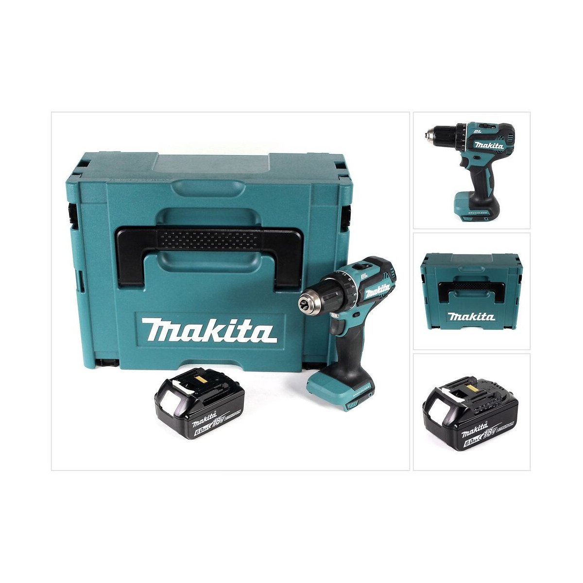 Contenu du paquet: - 1x Makita DDF 485 Z Perceuse visseuse sans fil - 1x Coffret Makpac 2 avec moulage - 1x Batterie 6,0 Ah Makita - Sans chargeur Description du produit: La perceuse visseuse sans fil DDF 485 de Makita est une aide pratique pour une grande variété d'applications grâce à sa conception compacte. Différents outils peuvent être serrés avec le mandrin à serrage rapide jusqu'à 13 mm. Les 21 pas de couple plus le pas de perçage adaptent le tournevis de perçage à la pièce à percer correspondante. Grâce à sa technologie inusable sans balais(Brushless) et à son engrenage planétaire entièrement métallique, cette perceuse visseuse DDF 485 de Makita offre une grande endurance et une grande longévité. La LED lumineuse donne une vue d'ensemble claire pendant le travail. Spécifications techniques: Vitesse à vide V1 : 0 - 500 tr/min Vitesse à vide V2 : 0 - 1.900 tr/min Ø max. de perçage dans le bois : 38 mm Ø max. de perçage dans l'acier : 13 mm Couple de serrage max. (léger.) : 27 Nm Couple de serrage max. (fort) : 50 Nm Plage de serrage du mandrin porte-forets : 1,5 - 13 mm Tension de la batterie : 18 V Dimensions (mm) : 169 x 79 x 255 Poids : 1,4 kg