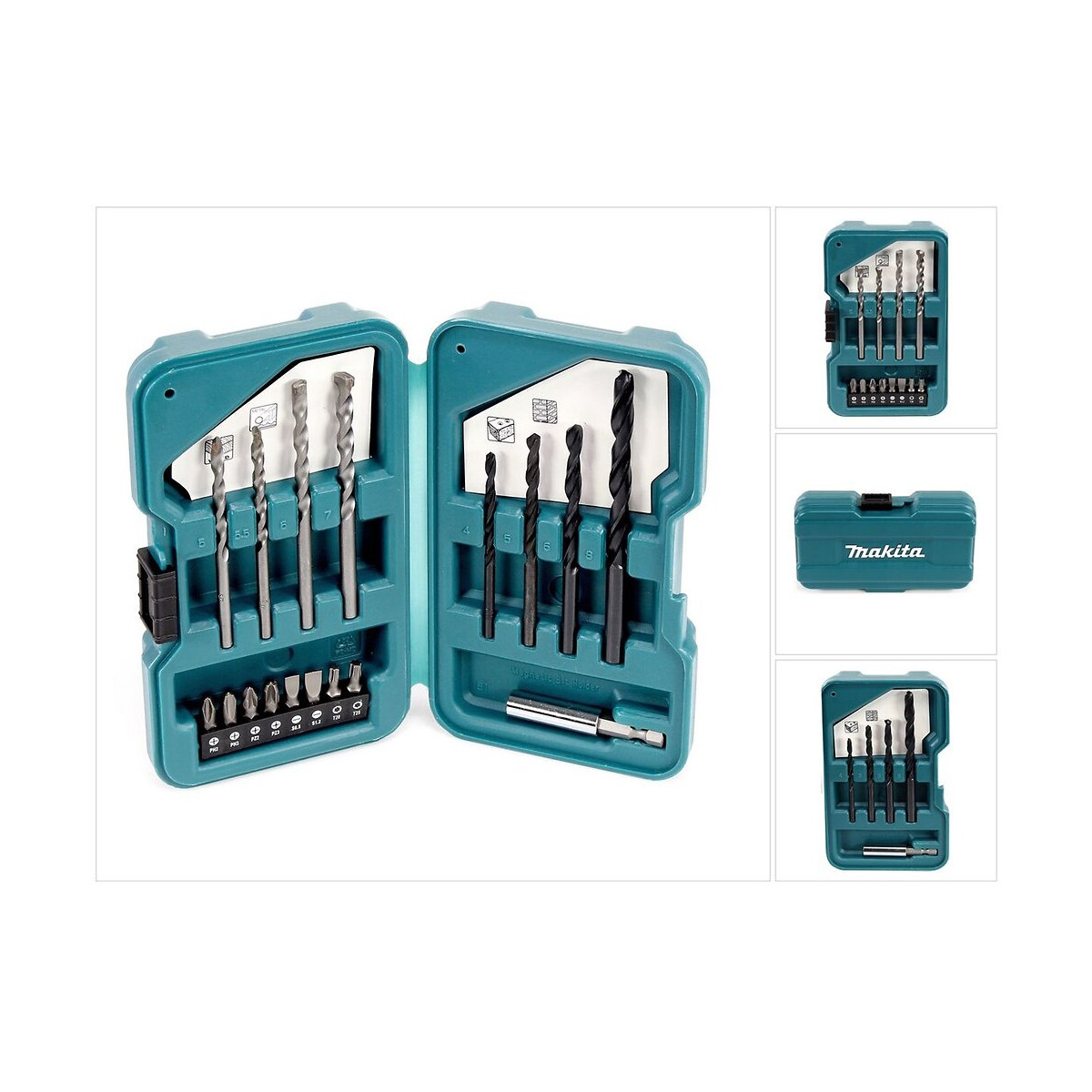 Contenu de la livraison: - 1x Makita D-40216 Jeu d'embouts et de forets - 17 pièces. - 1x Mallette plastique Makita Description du produit: Le jeu d'embouts et de forets Makita D-40216 offre une sélection de haute qualité de différents embouts croisés, fendus et Torx, ainsi que des forets pour le métal, le bois et la pierre. Spécifications techniques: - 4x HSS Forets pour métal/bois : 4, 5, 6, 8 mm - 4x Foret pour maçonnerie: 5, 5,5, 6, 7 mm - 4x Mèches transversales 25mm : PH2, PH3, PZ2, PZ3 - 2x Embouts fendus 25mm : S0.8, S1.2 - 2x Mèches Torx 25mm : T20, T25 - 1x Porte-embouts, magnétique