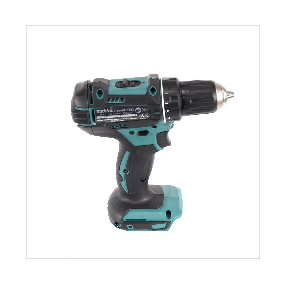 Contenu du paquet: - 1x Makita DDF 482 18 V Li-Ion Perceuse-visseuse sans fil - sans Batterie ni Chargeur Description du produit: Le kit Makita DDF 482 RTJ possède une perceuse sans fil compacte est puissante. La perceuse sans fil Makita DDF 482 18V est caractérisée par son engrenage planétaire à 2 vitesses et à son boîtier compact. Le moteur brushless (sans balais) fournit plus d'endurance et a un temps d'exécution plus long. Le couple de la machine est réglable en 21 positions. La perceuse sans fil Makita a une rotation gauche / droite et une lumière LED intégrée. Grâce au programme de combinaison de batterie Makita, vous pouvez élargir votre gamme de produits avec des batteries et des machines de Li-Ion 18V supplémentaires et vous pouvez combiner les produits selon vos besoins. Spécifications techniques: Vitesse de rotation à vide 1ère vitesse: 0 - 600 tr/min Vitesse de rotation à vide 2 ème vitesse: 0 - 1.900 tr/min Capacité de forage dans le bois: 38 mm Capacité de perçage dans l’acier: 13 mm Couple souple: 36 Nm Couple de serrage: 62 Nm Plage de serrage: 1,5 - 13 mm Tension: 18 V Dimensions (Lxlxh): 185x79x249 mm Poids (sans batterie/poignée latérale): 1,7 kg