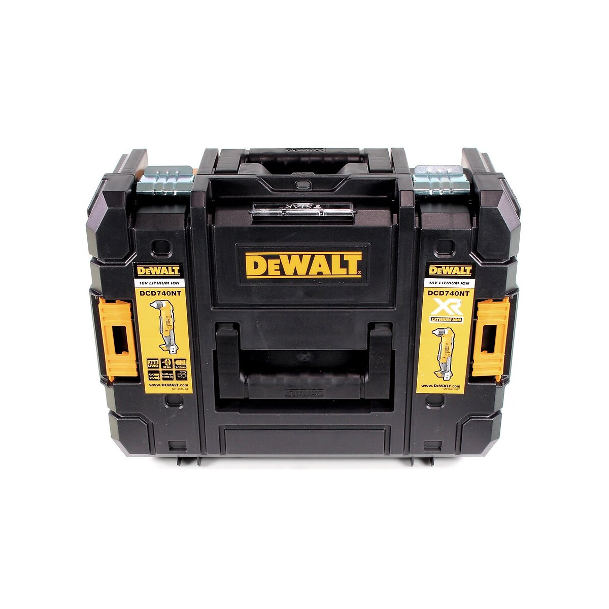 Contenu du paquet: - 1x DeWalt DCD 740 18 V Li-Ion Perceuse d'angle sans fil - 1x Batterie DeWalt DCB 184 5,0 Ah - 1x Chargeur DeWalt DCB 115 - 1x Malette de transport TSTAK II - 1x Porte-embout magnétique - 1x Clip de ceinture - 1x Manuel d'utilisation Description du produit: La puissante perceuse d'angle sans fil DCD 740 18 Volt Li-Ion de DeWalt est particulièrement pratique grâce à ses dimensions réduites et offre un réglage optimal de la vitesse et du couple avec la boîte de vitesses à 2 rapports. Son mandrin de perçage à serrage rapide et centralisé garantit un changement d'outil facile. Son boîtier caoutchouté assure une bonne tenue de la machine dans la main et réduit également les vibrations. De plus, une LED est intégrée, ce qui permet également d'effectuer des travaux sur des pièces moins bien éclairées. Le ventilateur haute performance intégré à cette perceuse d'angle sans fil DCD 740 de DeWalt permet d'obtenir de meilleures performances dans l'utilisation quotidienne et prolonge la durée de vie à long terme. Spécifications techniques: Voltage: 18 V Couple max. (hard/soft): 33 / 11 Nm Vitesse à vide max. (1ère/ 2ème vitesse): 650 / 2000 tr/min Capacité du mandrin: 1-10 mm Capacité de perçage maximale (Bois): 28 mm Capacité de perçage maximale (Métal): 10 mm Poids (sans batterie): 1,3 kg Dimensions (L x h x l): 295 x 102 x 67 mm
