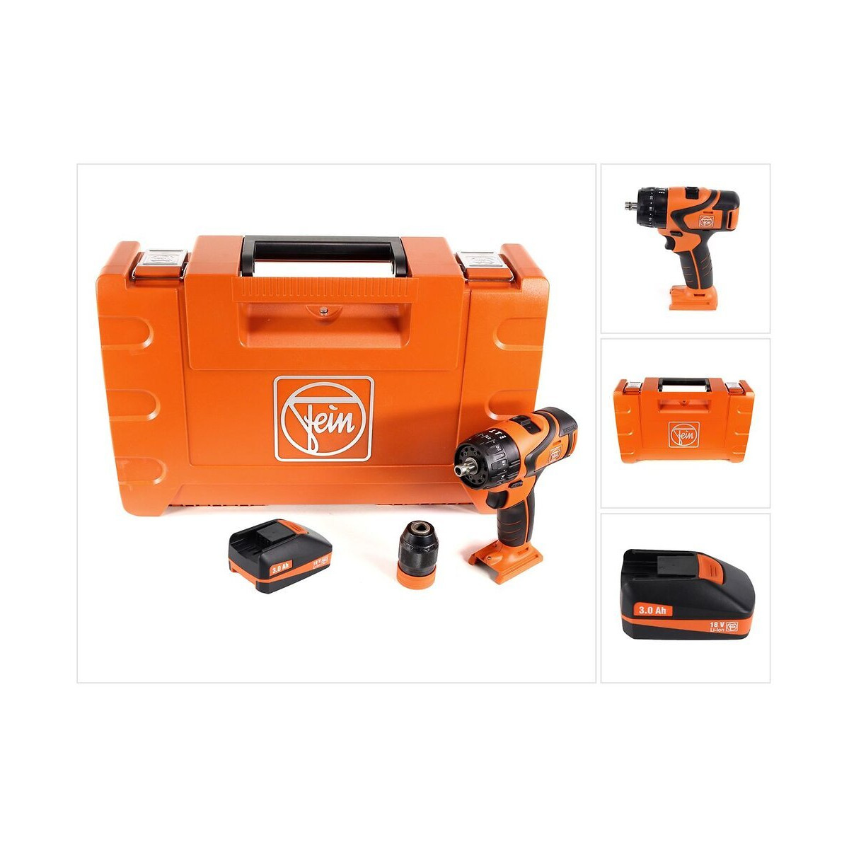 Contenu du paquet: - 1x FEIN ABS 18 Q Select Perceuse-visseuse sans fil ( 71132264000 ) - 1x Mandrin de perçage QuickIN 120 Nm - 1x Agrafe de ceinture - 1x Support d’embouts aimanté - 1x Coffret de transport en plastique - 1x Batterie FEIN 18V 3,0 Ah Li-Ion ( 92604182020 ) avec affichage LED - sans chargeur Description du produit: La perceuse-visseuse sans fil ABS 18 Q de la maison FEIN est équipée du moteur Power Drive, qui convainc par un rendement supérieur de 30% et une durée de vie nettement plus longue. Avec l'interface QuickIN, cette perceuse-visseuse sans fil ABS 18 Q de la maison FEIN est compatible avec tous les composants de l'interface QuickIn et un changement rapide d'application est possible. La boîte de vitesses à 2 vitesses entièrement métallique est de haute qualité et permet de percer dans le métal et de travailler avec des vis auto-perceuses. Le mandrin de perçage inclus dans la livraison permet un perçage de 120 Nm et impressionne par ses mors de serrage à pointe carbure et ses forces de serrage élevées. La batterie rechargeable FEIN 18 V 3,0 Ah est compacte et puissante. Ces batteries Li-Ion garantissent une durée de vie plus longue et des temps de charge courts. La technologie SafetyCell de FEIN protège la batterie et la machine contre la surcharge, la surchauffe et la décharge profonde. La batterie de 3,0 Ah peut être utilisée sur tous les outils Fein 18 V. Spécifications techniques: FEIN ABS 18 Q Select Perceuse-visseuse sans fil : Couple maxi (dur/souple) : 60 / 32 Nm Vitesse à vide (1ère vitesse / 2ème vitesse): 450 / 2000 trs/min Ouverture de mandrin: 1,5 - 13 mm Filetage de la broche: 1/2" Tension de la batterie: 18V Type de batterie: Lithium-Ion Paliers de couple: 22+1 Capacité de perçage dans le bois Ø maxi.: 50 mm Capacité de perçage dans l'acier Ø maxi.: 13 mm Taraudage: M 10 Batterie FEIN 18V 3,0 Ah Li-Ion : Tension de charge de la batterie: jusqu'à 18 V courant de charge: 8 Ampères Interface USB Affichage LED Poids : 680 g