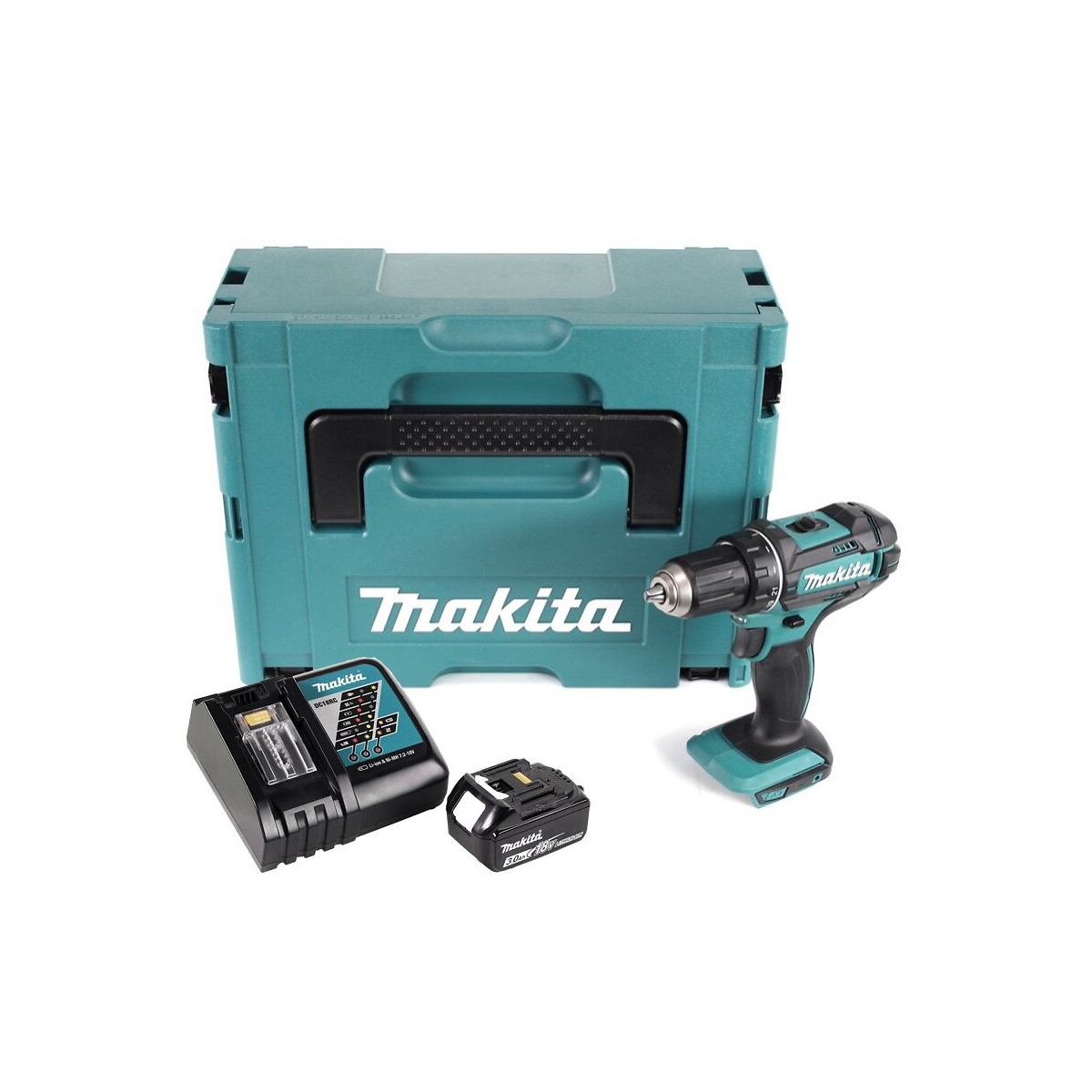 Contenu du paquet: - 1x Makita DDF 482 Perceuse et tournevis sans fil 18 V Li-Ion - 1x Batterie Makita BL 1830 B 18 V - 3,0 Ah Li-Ion - 1x Chargeur Makita DC 18 RC 7.2 V - 18 V pour batterie Li-Ion - 1x Coffret de transport Makita Makpac 2 - 1x Insert universel en mousse alvéolé 39 x 29 x 7cm Description du produit: L'outil DDF 482 du constructeur Makita est une puissante perceuse visseuse sans fil Li-Ion dotée d'une boîte de vitesse planétaire entièrement métallique à 2 vitesses. Son couple peut être réglé de façon précise en 21 positions pour diverses applications et la LED intégrée assure l'éclairage optimal de la zone de travail. Cette perceuse visseuse est équipée de l'exceptionnelle technologie XPT qui assure sa protection contre les infiltrations d'eau et de poussière. Livrée dans un coffret Makpac (avec insert) avec une batterie et un chargeur Makita, elle est toujours bien rangée et prête à l'emploi. Spécifications techniques: Vitesse à vide V1 : 0 - 600 min-1 Vitesse à vide V2: 0 - 1.900 min-1 Capacité de perçage dans le bois : 38 mm Capacité de perçage dans l'acier : 13 mm Couple de serrage max. (souple) : 36 Nm Couple de serrage max. (dur) : 62 Nm Plage de serrage du mandrin de perceuse : 1,5 - 13 mm Tension de la batterie : 18 V Dimensions (Longueur x Largeur x Hauteur) : 185x79x249 mm Poids (sans batterie/manche latérale) : 1,7 kg