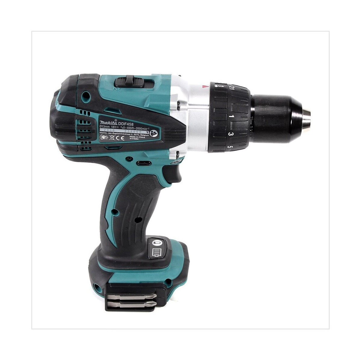Contenu du paquet: - 1x Makita DDF 458 Z Perceuse visseuse sans fil 18V 91Nm - 1x Poignée latérale Makita - sans batterie ni chargeur Description du produit: La puissante perceuse-visseuse sans fil Makita DDF 458 18V convainc par son engrenage planétaire entièrement métallique à 2 vitesses, une vitesse réglable avec sensibilité ainsi que le réglage du couple de 21 fois avec le pas de vis. La rotation dans le sens horaire/antihoraire et le mandrin à action rapide assurent un fonctionnement confortable. La LED brillante avec fonction de rallumage éclaire de manière optimale le poste de travail et l'indicateur de capacité informe toujours sur l'état de charge de vos batteries Makita. Le Makita DDF 458 est protégé contre la poussière et les éclaboussures d'eau et dispose d'un frein moteur intégré pour assurer la sécurité nécessaire à l'utilisateur et à l'outil. Spécifications techniques: Vitesse de ralenti 1ère vitesse : 0 - 400 tr/min Vitesse de ralenti en 2ème vitesse : 0 - 2 000 tr/min Capacité de forage dans le bois : 76 mm Capacité de forage dans l'acier : 13 mm Couple doux : 58 Nm Couple fort : 91 Nm Largeur de serrage du mandrin de perceuse : 1,5 - 13 mm Tension de la batterie : 18 Volt Dimensions : 225x79x259 mm Poids (sans batterie) : 1,97 k