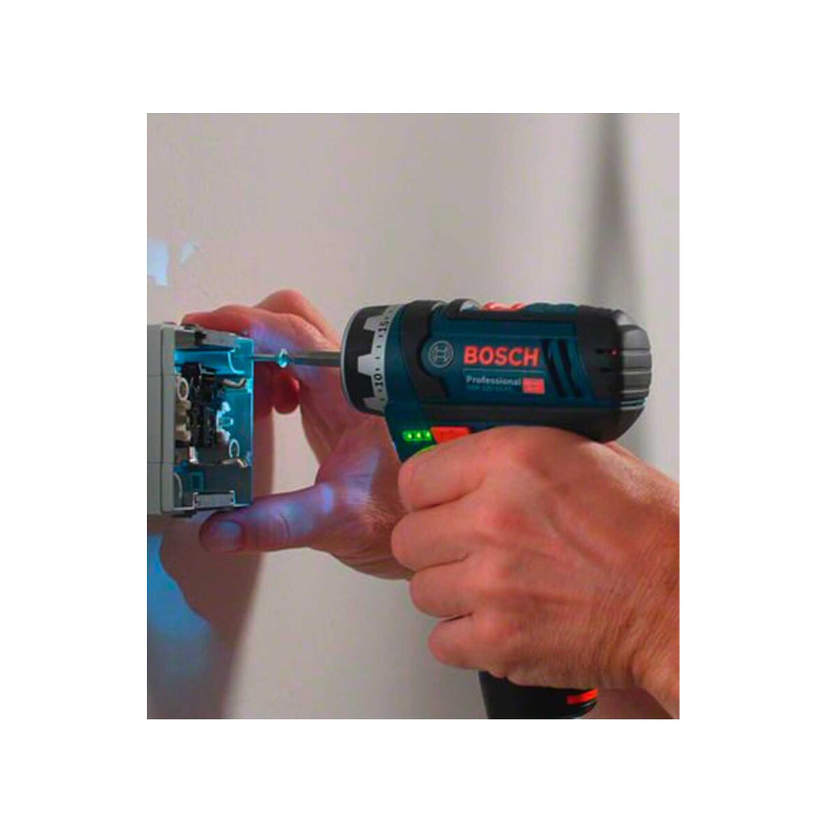 Perceuse-Visseuse BOSCH GSR 12V-15 FC Professional - Polyvalente - cinq options au choix : porte-embout magnétique, porte-embout verrouillable, mandrin de perçage, renvoi d'angle et porte-embout excentrique - Compacité : idéale pour les endroits difficiles d'accès grâce à sa forme très compacte - Puissance : excellentes performances grâce au couple de 30 Nm