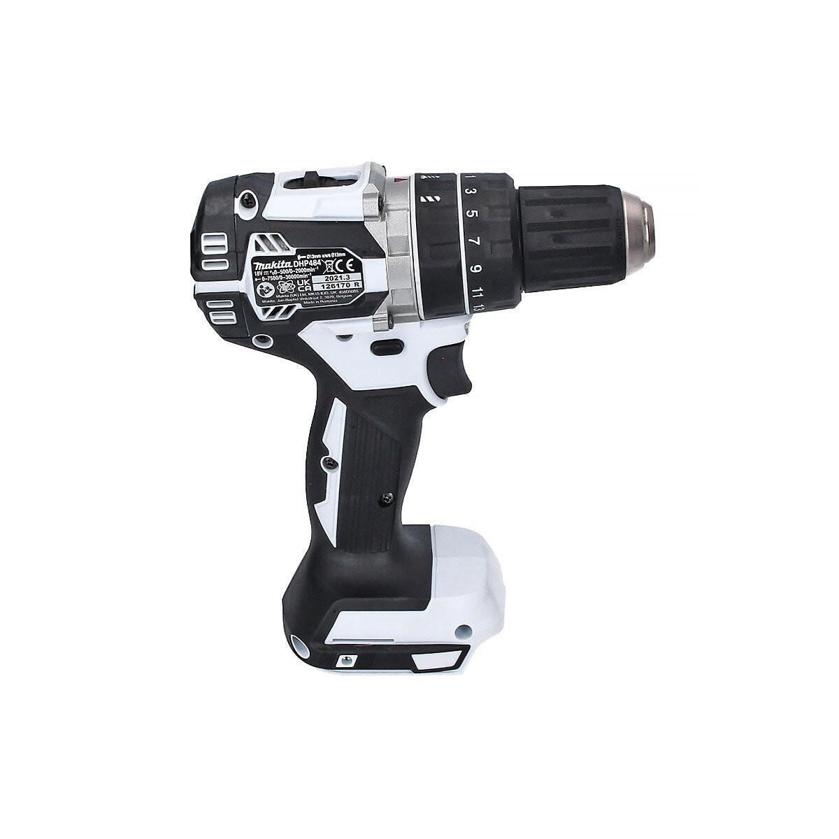Avantages produit Perceuse visseuse à percussion MAKITA DHP484ZW Robuste grâce à son carter d'engrenage en aluminium et sa pignonnerie entièrement métallique. Moteur BL: Puissant, compacticité de la machine accrues, rendement supérieur et maintenance réduite par rapport aux moteurs classiques. Technologie XPT limitant les infiltrations d'eau et poussières. Double éclairage LED intégré pour un travail plus aisé dans les endroits sombres. Poignée à revêtement Soft Grip pour plus de confort. Caractéristiques techniques Perceuse visseuse à percussion MAKITA DHP484ZW Tension : 18 V Composition chimique batterie : Li-ion Temps de charge en moyenne : 22 min. Nombre de batteries fournies : 0 Batt. compatibles : 18V Li-Ion 1,5 à 5 Ah Nombre de vitesses : 2 Vitesse à vide V1/V2 : 0 à 500 / 0 à 2000 tr/min Vitesse à vide V1 : 0 à 500 tr/min Vitesse à vide V2 : 0 à 2000 tr/min Frappe V1/V2 : 0 à 7500 / 0 à 30000 cps/min Frappe V1 : 0 à 7500 cps/min Frappe V2 : 0 à 30000 cps/min Couple de serrage max. (élast/franc) : 36 / 54 Nm Couple de serrage max. (élast.) : 36 Nm Couple de serrage max. (franc) : 54 Nm Ø max. dans le béton : 13 mm Ø max. dans l'acier : 13 mm Ø max. dans le bois : 38 mm Capacité maximale du mandrin : 13 mm Dimensions (L x l x h) : 182 x 79 x 261 mm Poids net EPTA : 1,9 kg Accessoires 1 X Crochet ceinture OUTIL VENDU SANS CHARGEUR NI BATTERIE