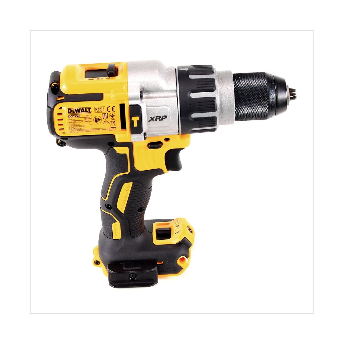 Perceuse à Percussion DeWALT DCD996 - Perceuse à percussion à grande puissance grâce à sa forte cadence de frappe (38250 cps/min max.) ce qui permet à l'utilisateur de travailler plus rapidement et avec efficacité - 3 vitesses réglables et réversibles avec une transmission métallique pour une plus grande autonomie et une durée de vie de la machine améliorée - Réglage de couple à 22 positions pour des résultats précis et constants - Mandrin auto-serrant de 13 mm : blocage d'arbre automatique pour un changement simple et rapide d'accessoires - Embrayage électronique et couple de serrage réglable en 11 positions pour des résultats précis et parfaits - Gâchette intelligente offrant un contrôle optimal dans toutes les applications - Poignée ergonomique conçue pour une meilleure prise en main - Eclairage LED puissant multifonctions pour permettre une visibilité optimale dans toutes les situations - Clip ceinture permettant d'accrocher la machine à la ceinture pour effectuer des applications manuelles