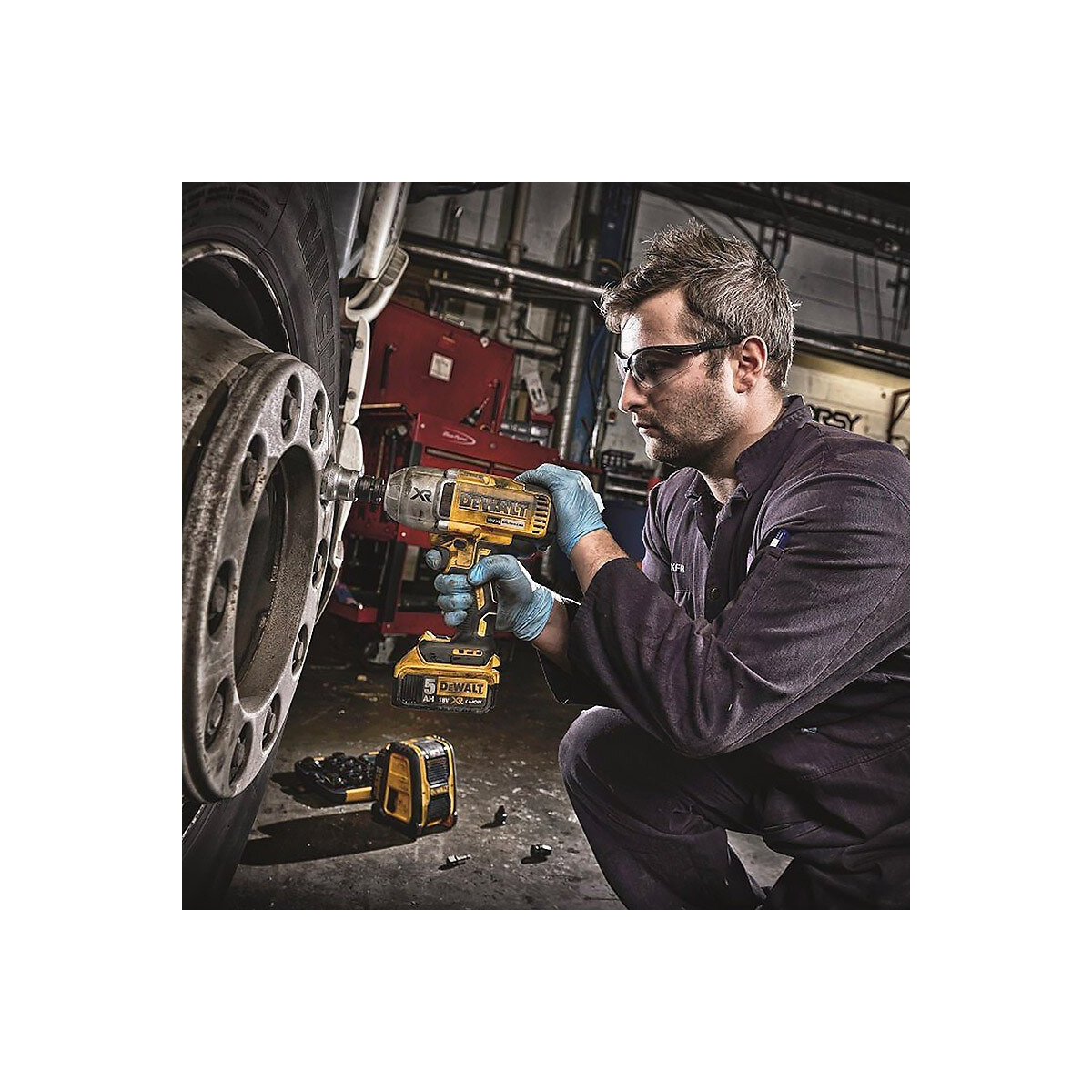 Clé à Chocs DeWALT DCF899H - Son moteur puissant réfrigéré par ventilateur offre un couple de serrage jusqu'à 950 Nm, une cadence de frappe jusqu'à 2400 cps/min et un couple de desserrage de 1625Nm. - 3 vitesses et couples de serrages réglables permette un contrôle parfait quelque soit l'utilisation - Engrenages entièrement métalliques pour une transmission optimale de l'énergie et pour une meilleure longévité de la machine - Carré 1/2" (13 mm) permettant de changer rapidement et facilement les douilles de vissage - La poignée ergonomique en caoutchouc XR et l'interrupteur offre plus de confort et un contrôle optimal - Eclairage LED avec fonction de retardateur améliorante la visibilité et la fonctionnalité