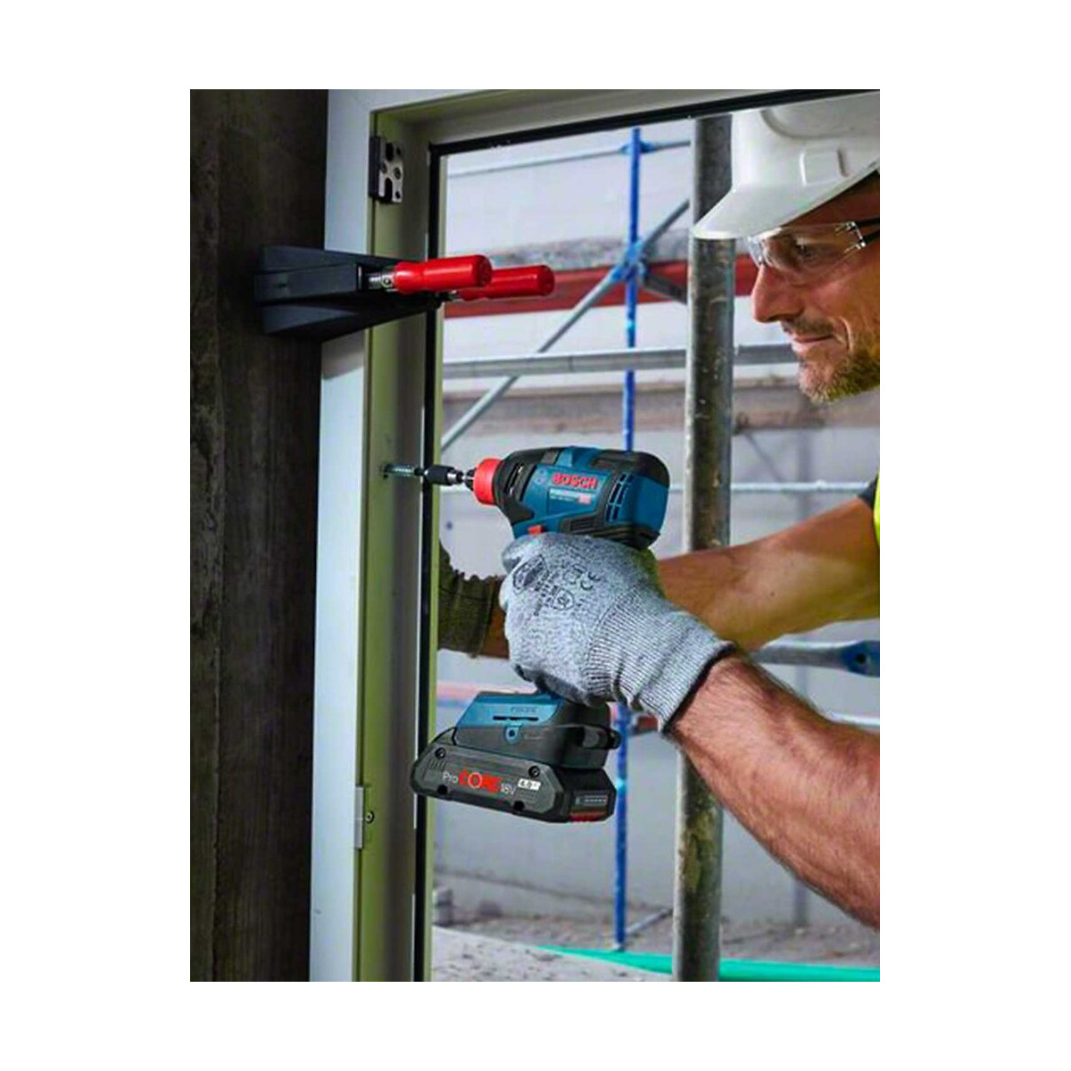 Clé à Chocs BOSCH GDX 18V-200 C Professional - La Clé à Chocs 18 V Bosch la plus puissante avec porte-outil 2 en 1 et moteur Brushless - Extrêmement puissante pour applications très exigeantes grâce au couple de 200 Nm - Grande polyvalence dans une grande gamme d'applications grâce au porte-outil 2 en 1 (six pans creux 1/4" et carré mâle 1/2") - Connectivité Bluetooth permettant à l'utilisateur d'être informé activement de l'état de l'outil, des besoins d'entretien et de paramétrer à distance certaines fonctions - Conçu pour le vissage dans le bois et le métal de vis de diamètres M6 à M14 - Dispose également d'une électronique ECP (Electronic Cell Protection), d'une électronique EMP (Electronic Motor Protection), d'un éclairage LED, de trois vitesses au choix, d'une réversibilité gauche-droit et d'un variateur de vitesse - Compatible avec toutes les batteries et tous les chargeurs 18 V de Bosch Professional (Professional 18V System)
