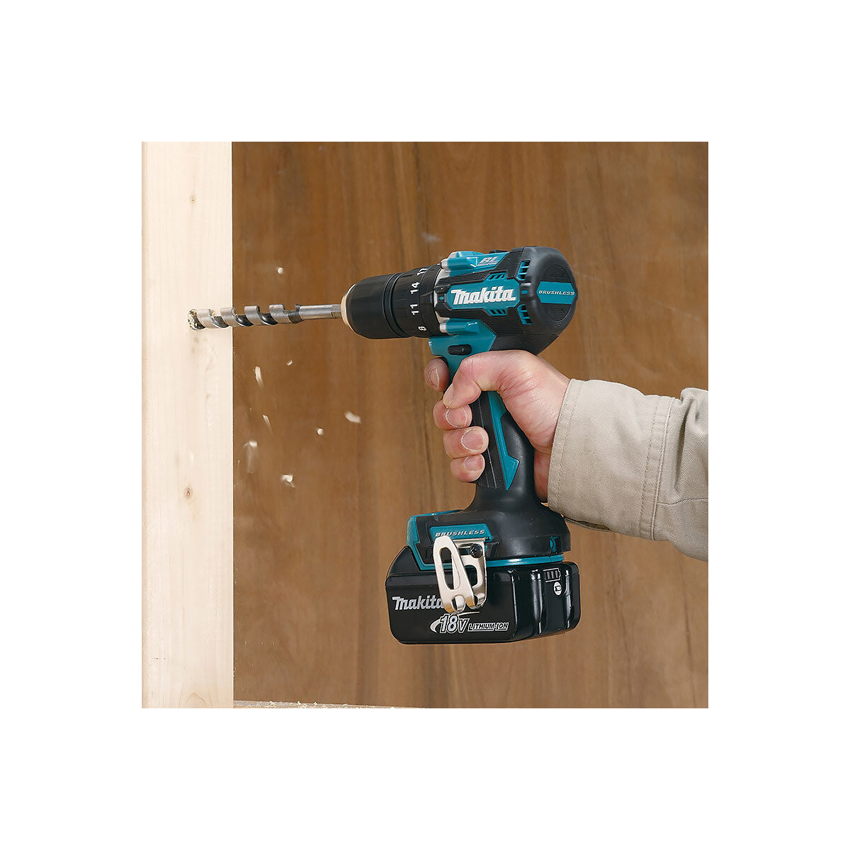 Avantages produit Perceuse visseuse à percussion MAKITA DHP487Z 18V Moteur BL sans charbons: aucun entretien et consommation d'énergie réduite, donc augmentation de l'autonomie Extrêmement compacte avec une longueur de seulement 176 mm Frappe mécanique enclenchable Ergonomie spécialement étudiée pour une réduction de la fatigue de l'utilisateur et une efficience de travail augmentée : design de la poignée adapté à la forme de la main, balance parfaite, revêtement souple nervuré pour une prise en main confortable et sûre Protection renforcée contre l'humidité et la poussière avec le système XPT (eXtreme Protection Technology) Machine robuste à engrenage planétaire métallique et moteur puissant Très légère et compacte, idéale pour les espaces réduits Mandrin bloqué à l'arrêt pour changement des inserts d'une seule main Inverseur de rotation (gauche/droite) intégré dans la poignée Couple de serrage 2x10 positions + perçage Double éclairage LED temporisé 2 vitesses mécaniques, vitesse variable, débrayage, frein moteur Caractéristiques techniques Perceuse visseuse à percussion MAKITA DHP487Z 18V Volt 18 V 1ère vitesse à vide 0 - 500 2e vitesse à vide 0 - 1700 Nbre de frappes 1ère vitesse 0 - 7500 Nbre de frappes 2e vitesse 0 - 25500 min-1 Couple max. de desserrage 40 Nm Couple maximum dur 40 Nm Couple maximum mou 23 Nm Mandrin autoserrant 1.5 - 13 mm Capacité de perçage dans le bois 36 mm Capacité de perçage dans l'acier 13 mm Capacité de perçage dans la maçonnerie 13 mm Vibrations 10.0 / 2.5 m/s² Vibrations forage à percussion 1.5 m/s² Facteur K (vibrations) 1.5 m/s² Pression acoustique 83 dB(A) Puissance acoustique 94 dB(A) Facteur K (son) 3 dB(A) Dimensions 176x79x247 mm Poids incl. accu 1.7 kg