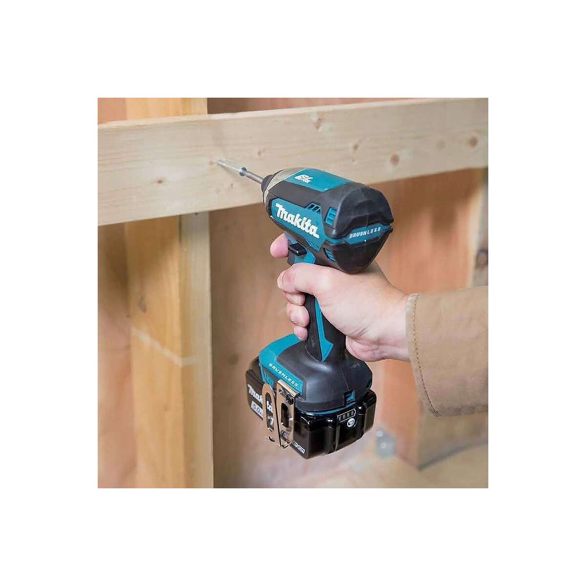 AVANTAGES PRODUIT Visseuse à chocs légère et compacte, adaptée aux travaux de vissage et serrage les plus divers. Moteur sans charbons à pilotage électronique restituant un couple supérieur aussi bien en marche gauche qu'en marche droite, tout en effectuant plus de travail avec la même capacité de batterie. Maîtrise excellente du vissage grâce à l'interrupteur à variateur et au frein électrique arrêtant la machine dès qu'on lâche l'interrupteur. Deuxième génération de poignée ergonomique s'amincissant vers le bas et revêtue de caoutchouc, à profil nervuré breveté améliorant la force de prise en main et répartissant l'effort sur tous les doigts. Eclairage LED intégré pour un travail plus aisé dans les endroits sombres Livrée avec deux batteries Li-ion puissantes 5,0Ah, à protection électronique contre la surcharge, la surchauffe et les décharges profondes et aux contacts auto-nettoyants assurant un transfert optimal du courant. Le chargeur performant détermine une trajectoire de charge individuelle en fonction de la condition de la batterie, assurant la pleine charge (5.0Ah) en 45 minutes seulement. Livrée dans un coffret solide en ABS nervuré, au système de verrouillage permettant d'empiler et de solidariser plusieurs coffrets. CARACTERISTIQUES TECHNIQUES Composition chimique batterie Li-ion Tension batterie nominale 18 V Nombre de batteries fournies 2 Régime à vide0 - 3400 t.p.m. Cadence de chocs 10 - 3600 min-1 Couple maximum (serrage franc) 170 Nm Capacité boulon standard M 16 Capacité boulon HR M 14 Emmanchement d'embout hex. 1/4' DIN3126E Taux de vibration triaxial (ah) 13,0 m/s² Marge d'incertidude vibration (K) 1,5 m/s² Emission sonore (LWA) 107 dB(A) Pression sonore (LpA) 96 dB(A) Marge d'incertidude bruit (K) 3 dB(A) Dimensions (Lo x La x H) 126 x 79 x 220 mm Poids avec accu (EPTA 01/2003) 1,5 kg ACCESSOIRES 1 Chargeur rapide DC18RC 2 Batteries BL1850B Li-ion (5Ah) 1 Coffret MAKPAC type II 1 Clip de ceinture