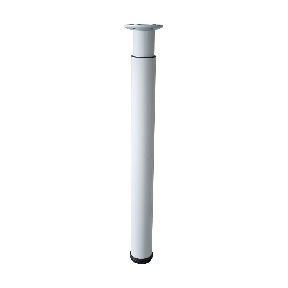 Pied aluminium réglable cylindrique diamètre 7,6cm hauteur 70-110cm - Charge : 100kg par pied - Platine diamètre 13cm - Finition : époxy blanc- Patin + Vérin réglable.Spécifications techniques