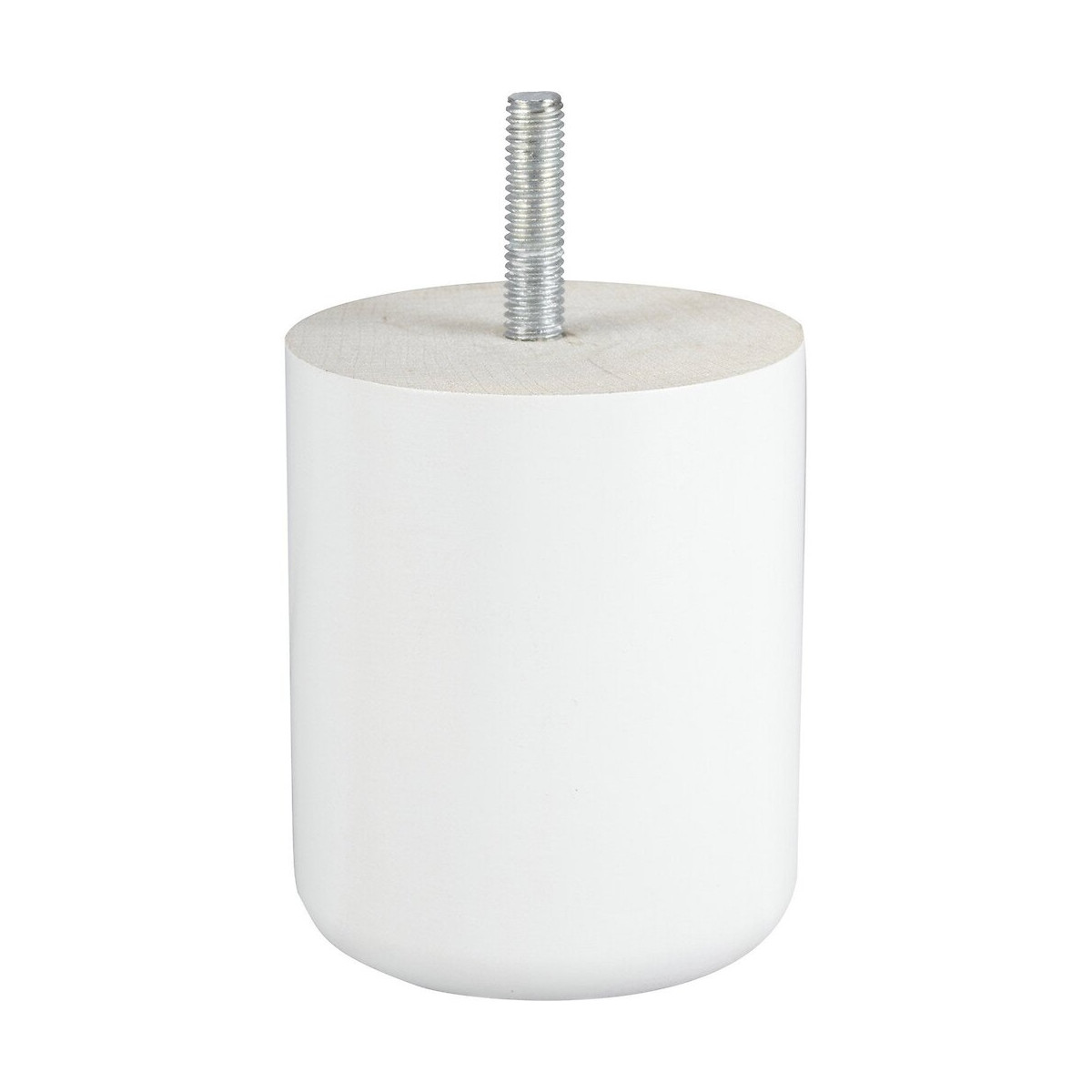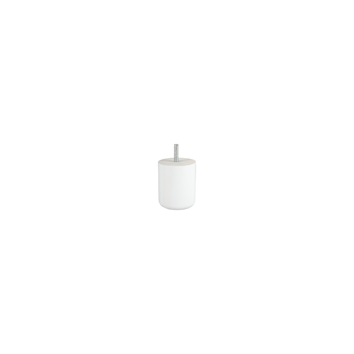 Pied cylindrinque. Pour meuble. Tige fileté M8. Hêtre laqué blanc. Ø68mm. H.80mm. Vrac étiqueté sur attache de suspension.