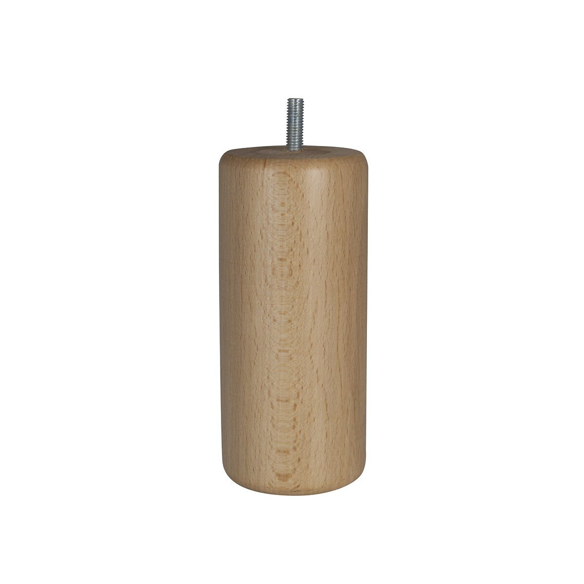 Pied de Lit/sommier cylindrique fixe hêtre vernis blanc Diamètre 6,8 cm Hauteur 15 cm Tige fileté M8 Certifié PEFC