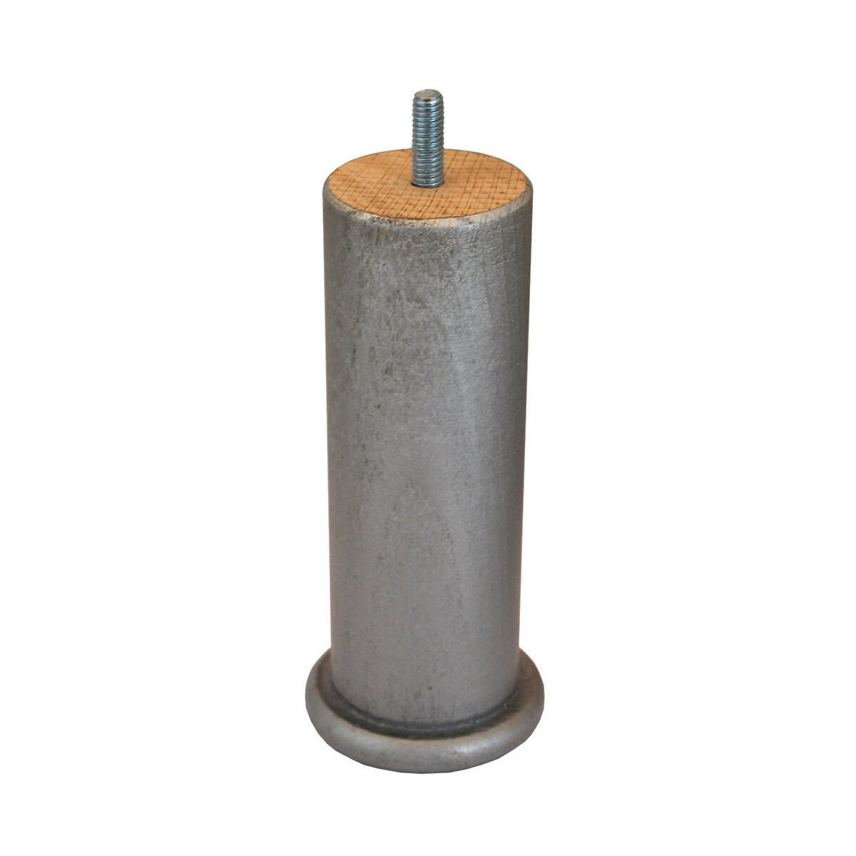 Pied de lit design en hêtre laqué gris alu mat. Dimensions: Ø50mm. H.150mm. Tige filetée M8