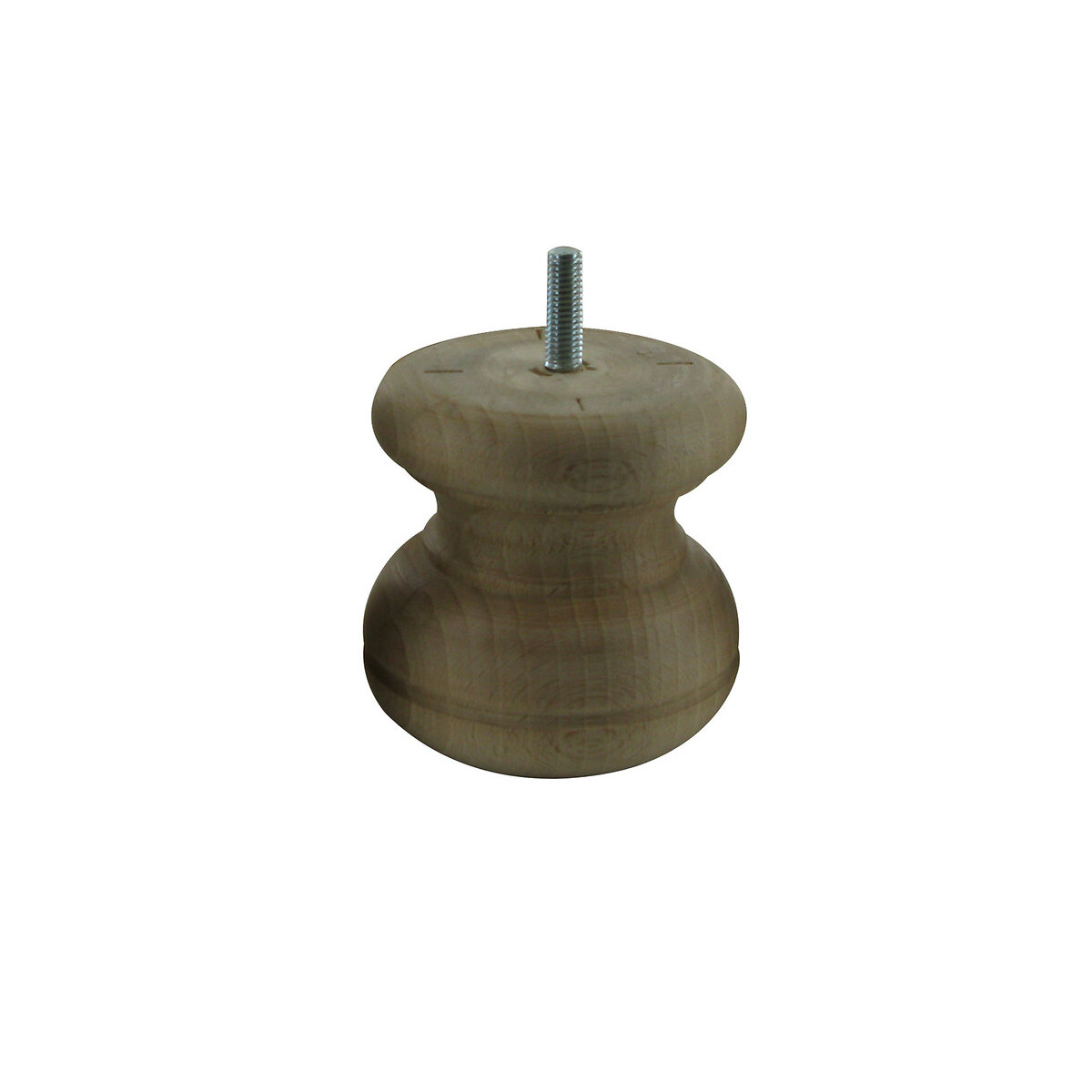Pied à collerette. Pour meuble. Tige filetée M8. Hêtre brut. Ø85mm. H.100mm. Vrac étiqueté sur attache de suspension.