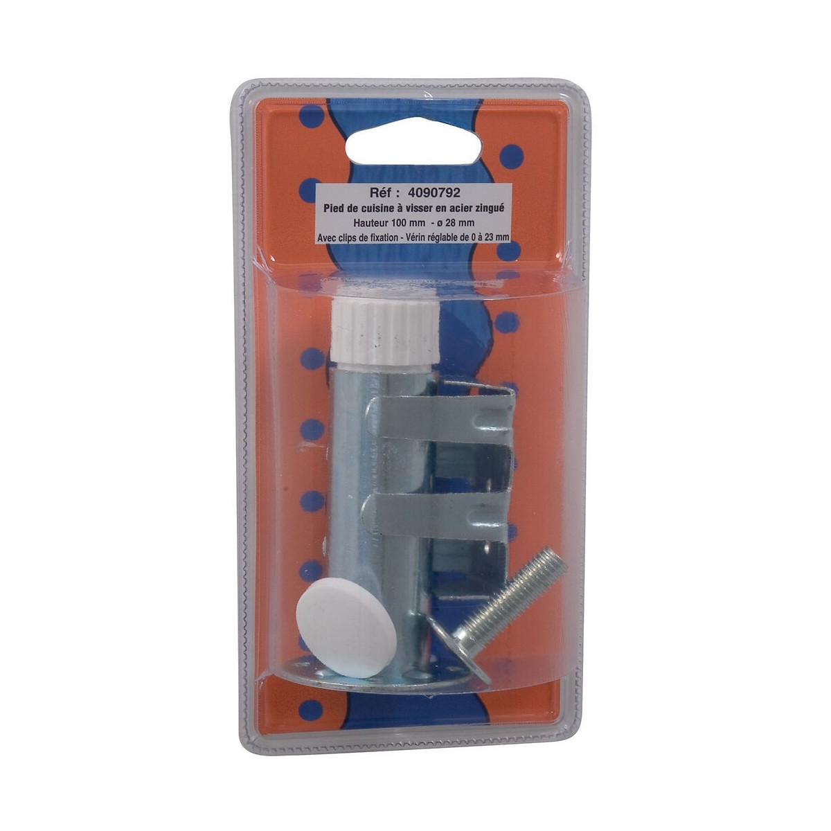 Pied de meuble caisson visser zingue hauteur 100mm diamètre 28mm.Spécifications techniques