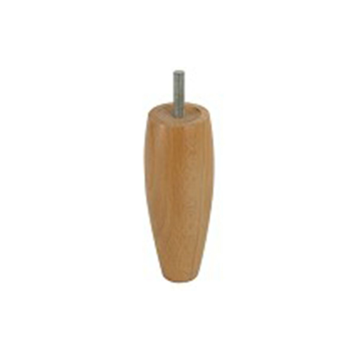 Pied de lit forme olive en hêtre vernis diamètre 50 mm, hauteur 150 mm. vis filetée 8 mm.
