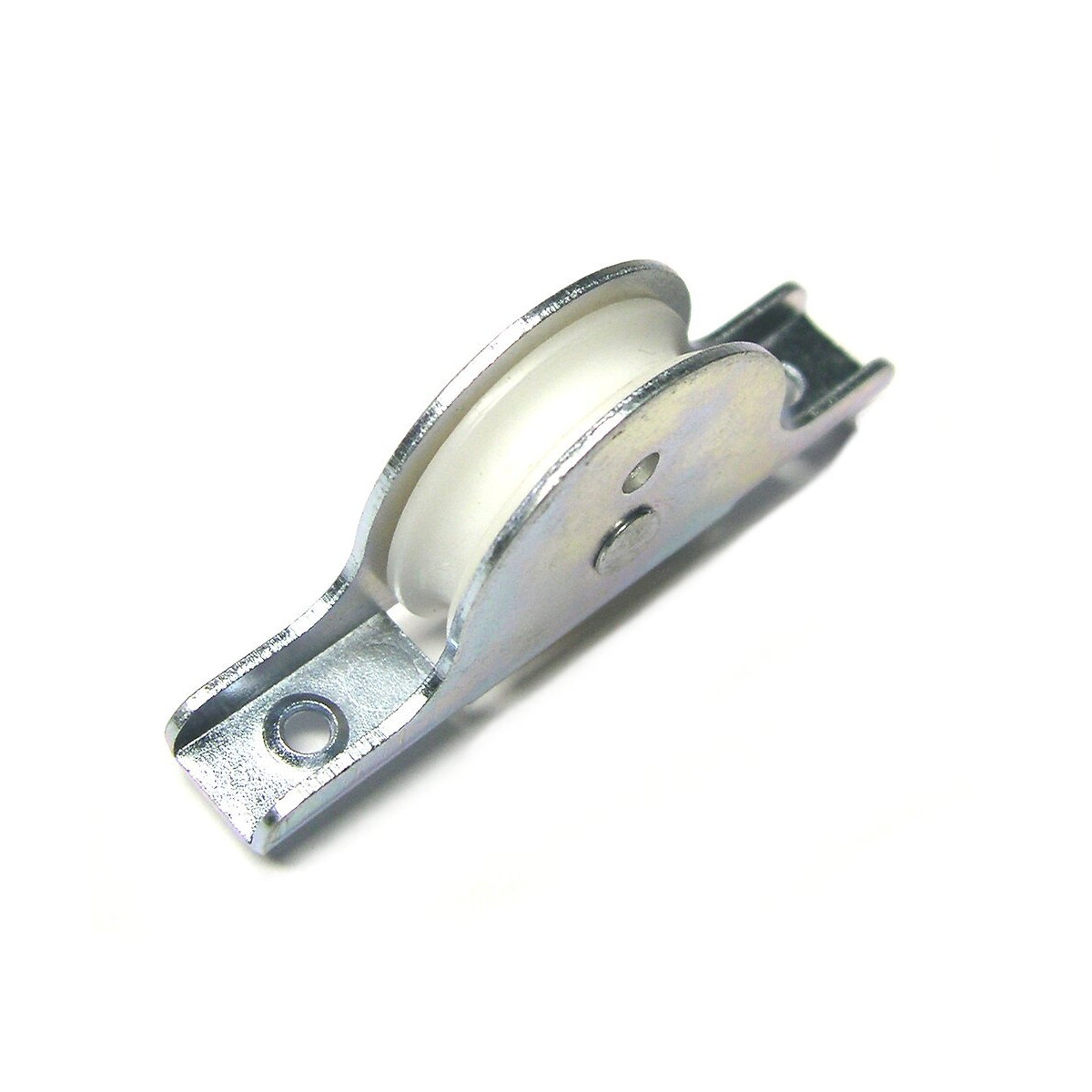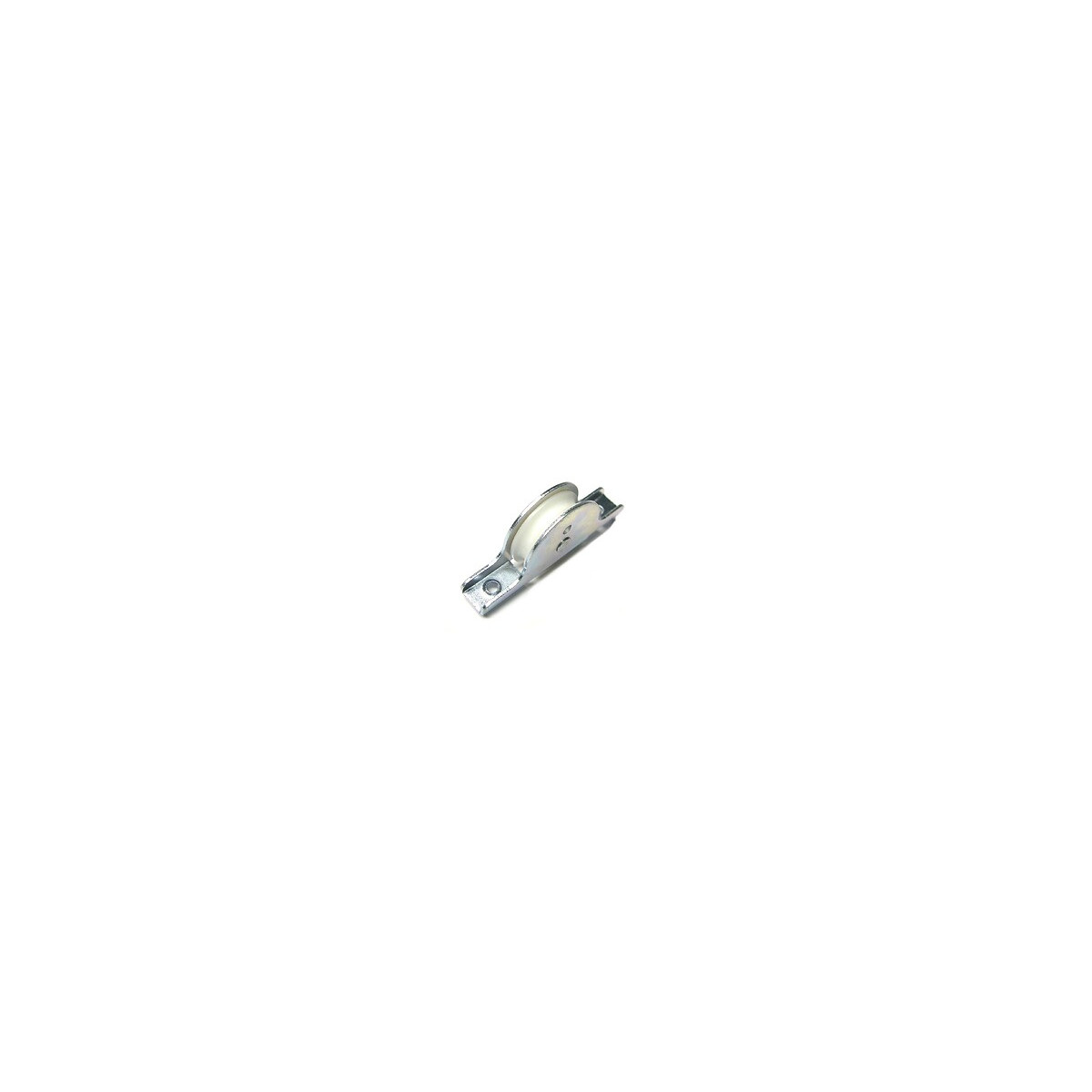 Galets vitrine à gorge en nylon platine. Charge maximale 10 kg. Dimensions : Diamètre 20 mm x Hauteur 26 mm. Lot de 2 galets.