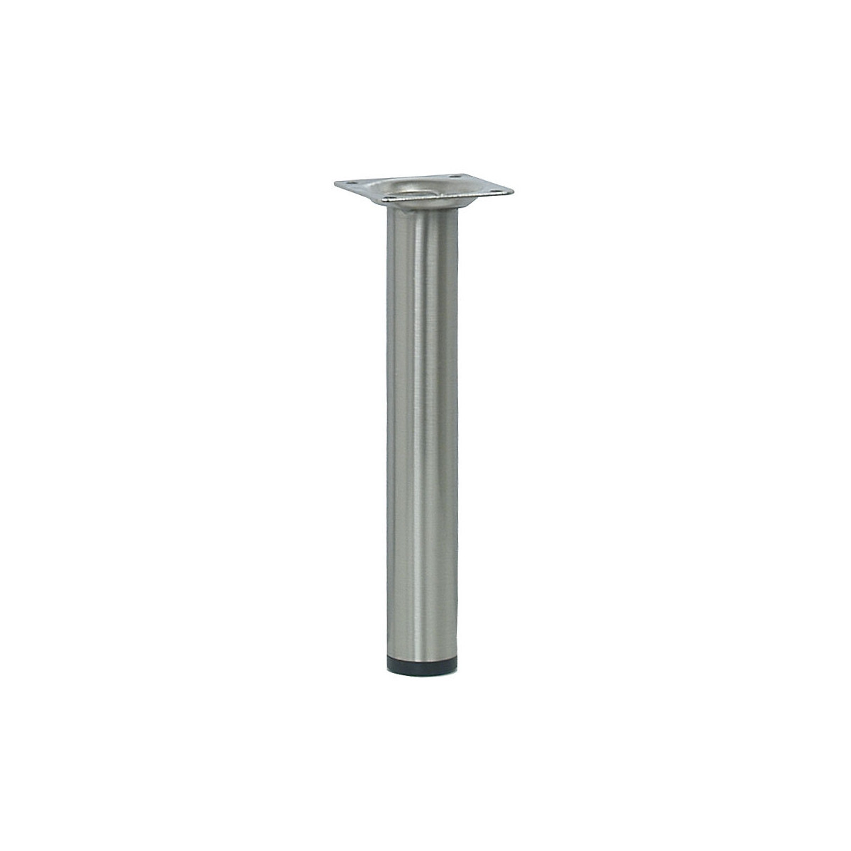 Pied métallique cylindrique diamètre 3cm hauteur 20cm - Charge : 50kg par pied - Platine 6x6cm - Finition : Acier brossé - Patin - Vérin en option.Spécifications techniques