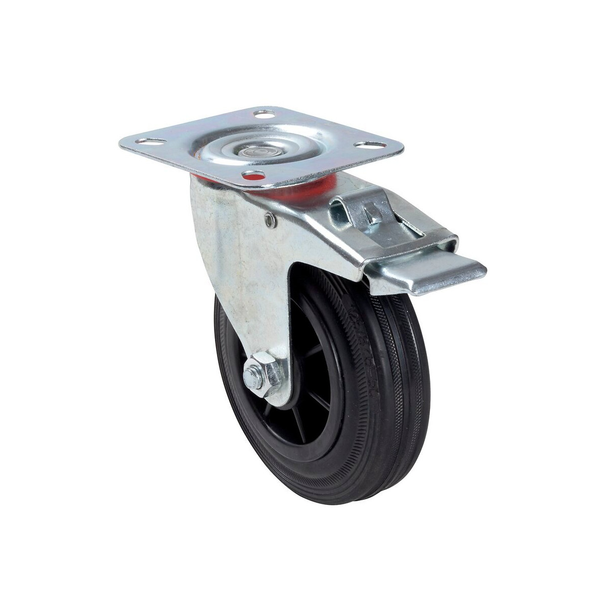 Roulette platine à frein pivotante 125 mm diamètre avec caoutchouc noir renforcé, 100kg charge.Spécifications techniques