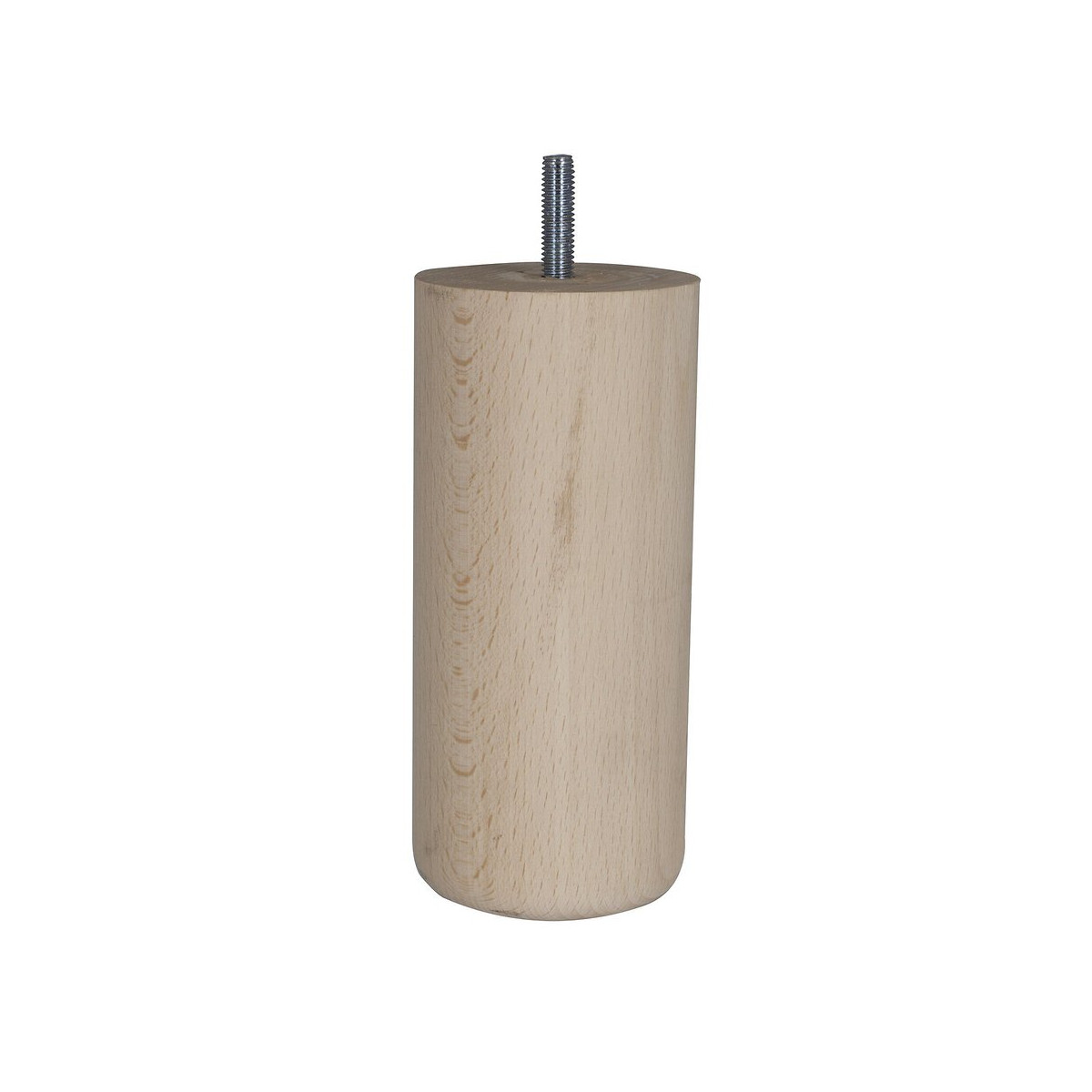 Pied de lit / sommier cylindrique Hêtre brut Diamètre 6,8 cm Hauteur 15 cm Tige fileté M8 Peut être peint certifié PEFC