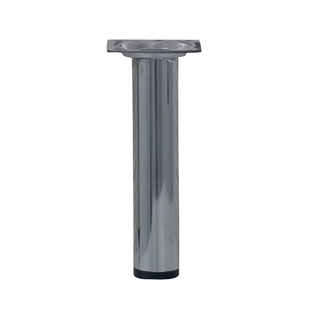 Pied métallique cylindrique diamètre 3cm hauteur 15cm - Charge : 50kg par pied - Platine 6x6cm - Finition : Chromé - Patin - Vérin en option.Spécifications techniques