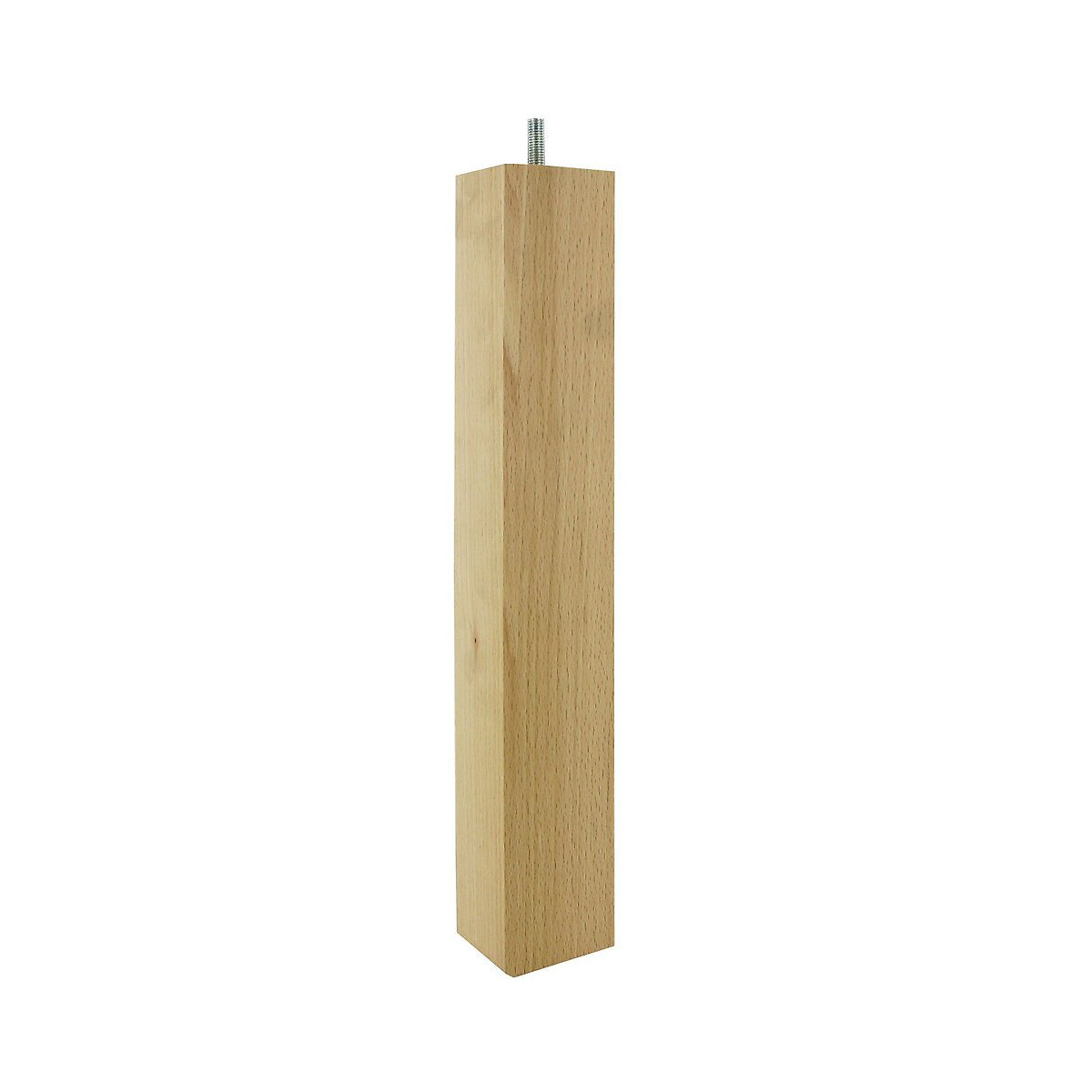 Pied carré. Pour table basse. Tige filetée M8. Hêtre brut. Section 55x55mm. H.360mm. Vrac étiqueté sur attache de suspension.
