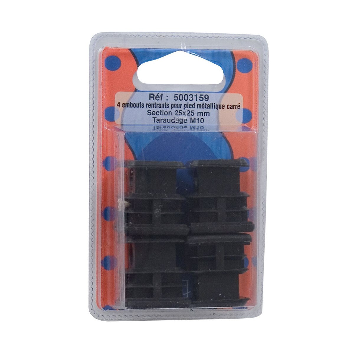 Blister de 4 embouts carré noir 25x25mm.Spécifications techniques
