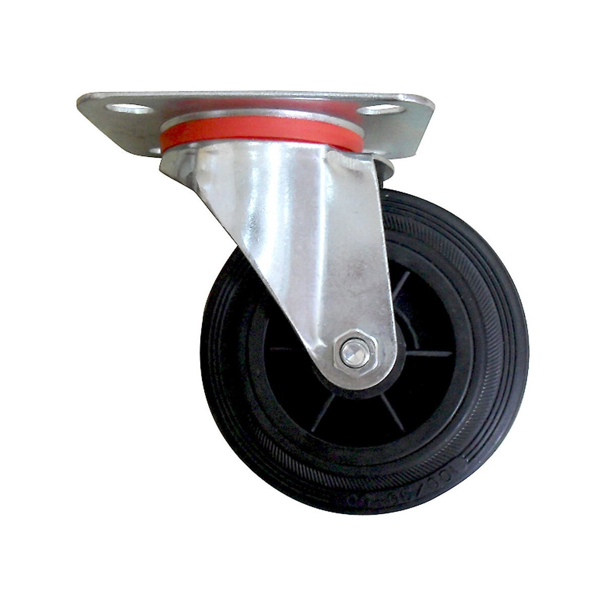 Roulette fixe avec fixation par platine pivotante 125 mm diamètre avec caoutchouc noir renforcé en acier, 100kg charge.Spécifications techniques