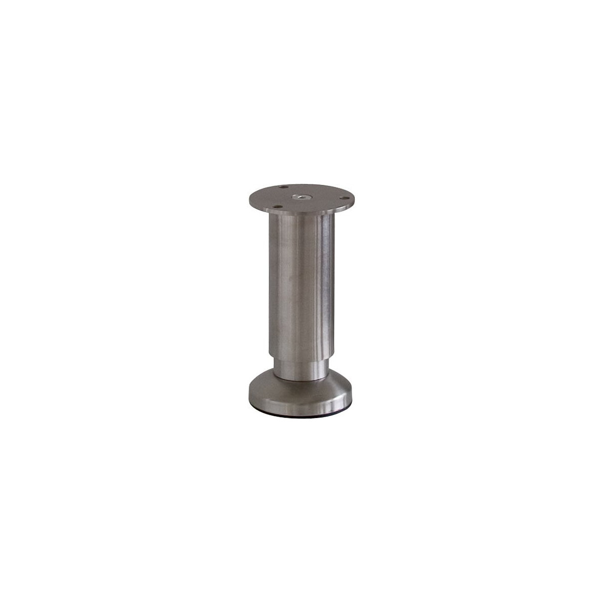 Pied inox réglable cylindrique diamètre 4cm hauteur 12-13,5cm - Charge : 60kg par pied - Platine diamètre 5,8cm - Finition : Inox - Vérin réglable diamètre 60.Spécifications techniques