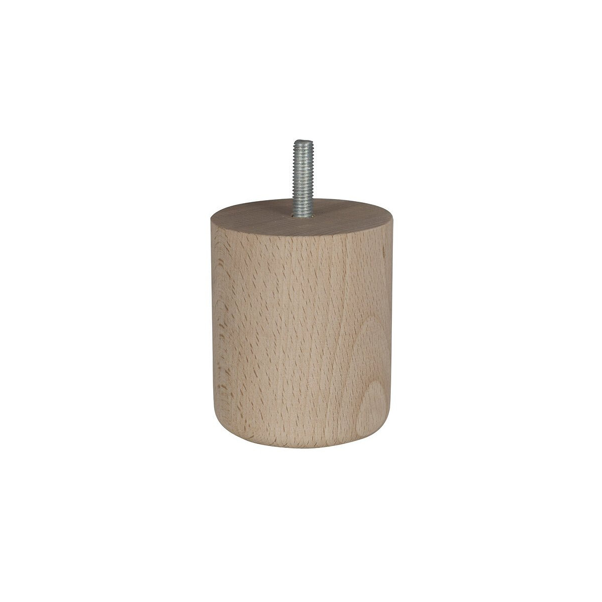 Pied de meuble cylindrique en hêtre brut. Dimensions: Ø68mm. H.80mm. Tige filetée M8