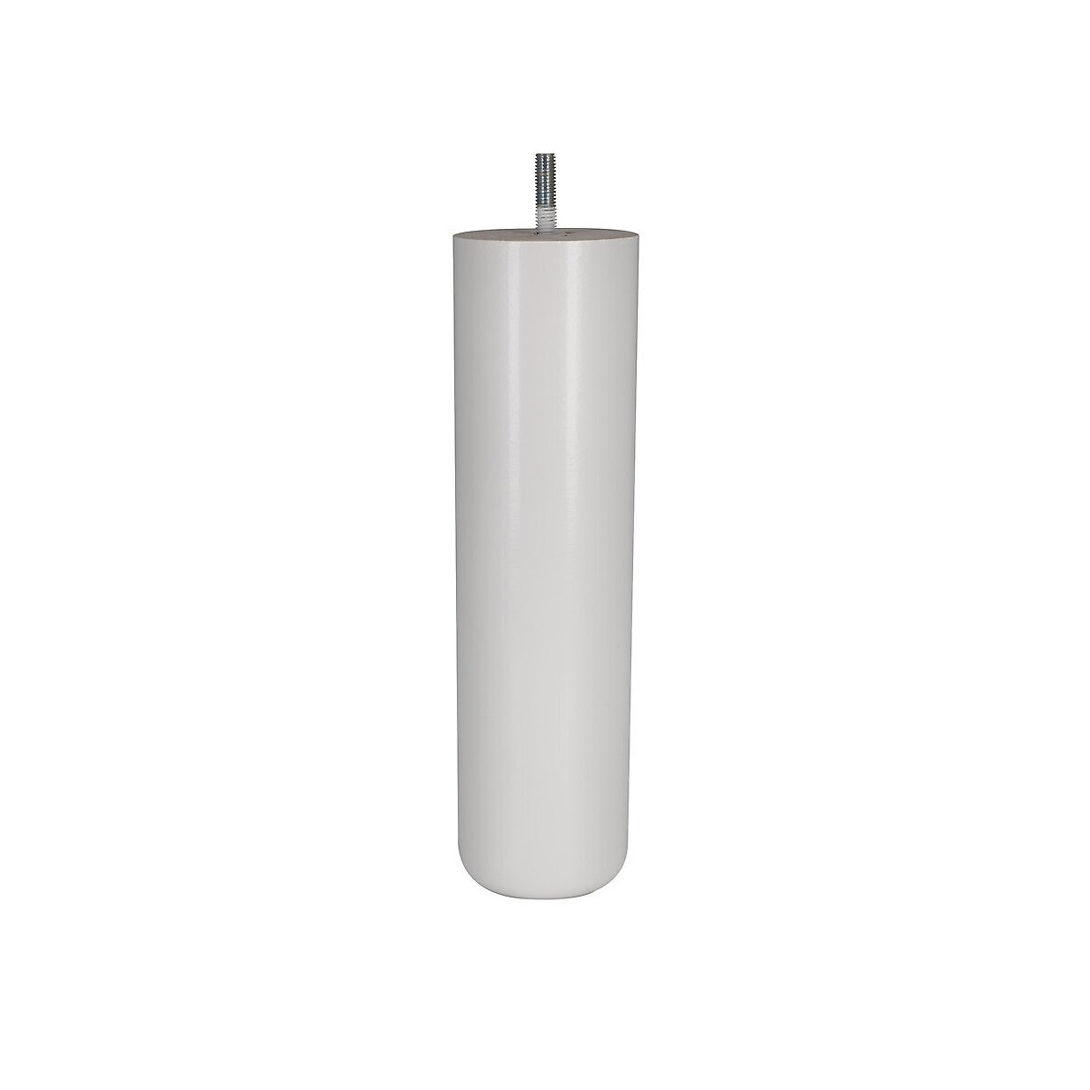 Pied cylindrinque. Pour lit. Tige fileté M8. Hêtre laqué laqué blanc. Ø68mm. H.250mm. Vrac étiqueté sur attache de suspension.