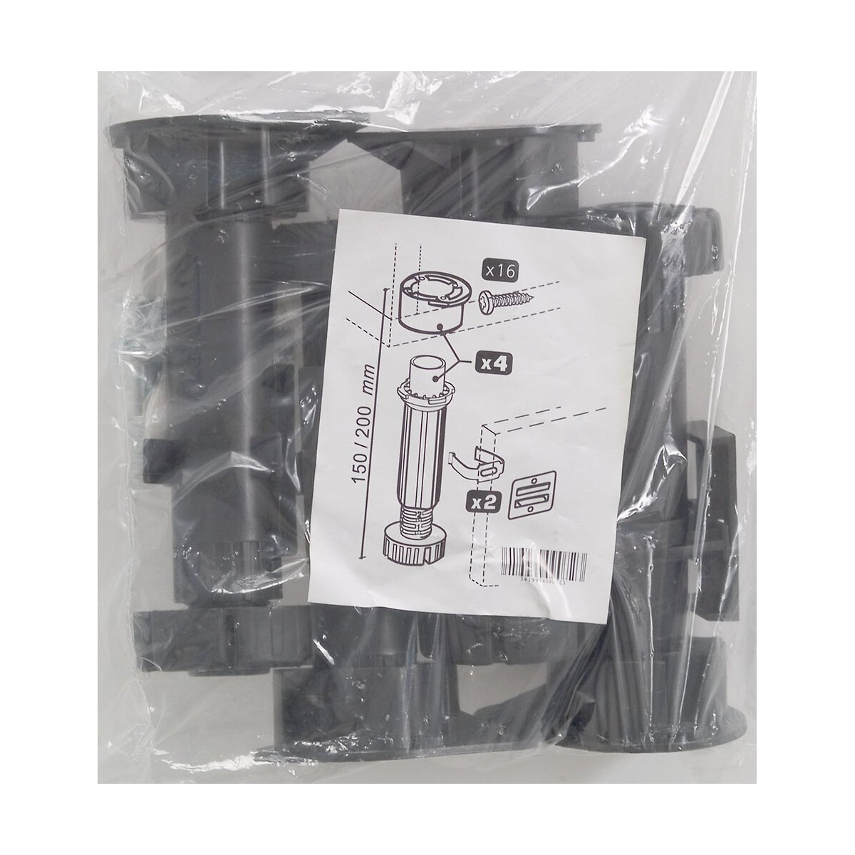 Sachet de 4 pieds de cuisine plastique noir réglable 15 à 22cm