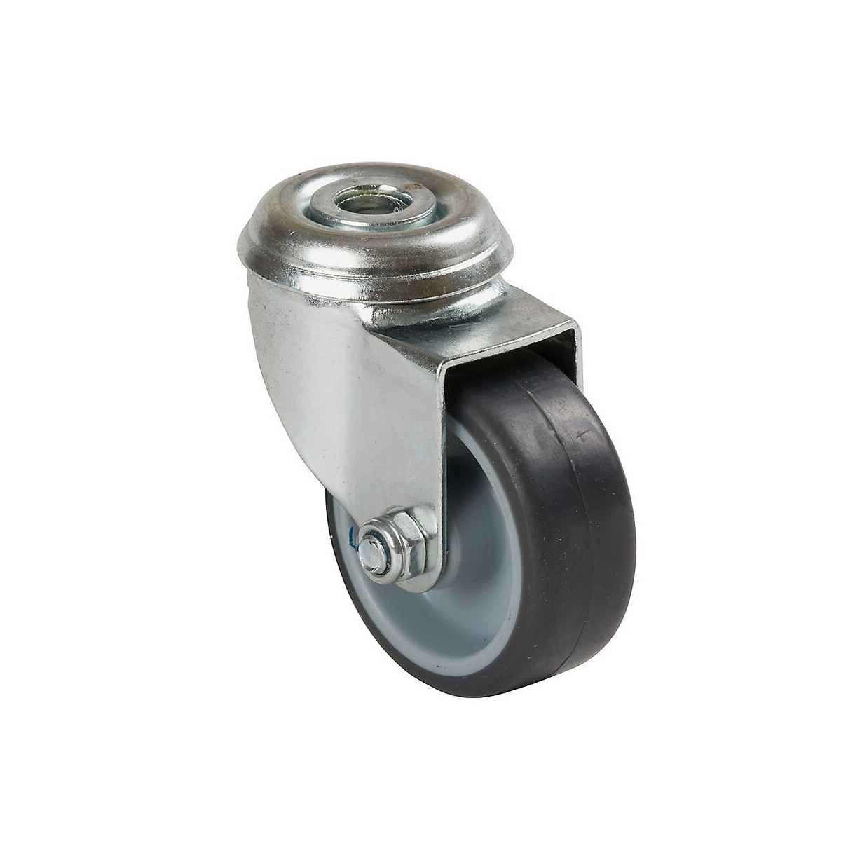 Roulette pivotante. Galet caoutchouc gris. Pour appareil moyen. Diamètre 65 mm. Hauteur 93 mm. Charge maxi 30kg. Fixation par trou de 10 mm.Spécifications techniques