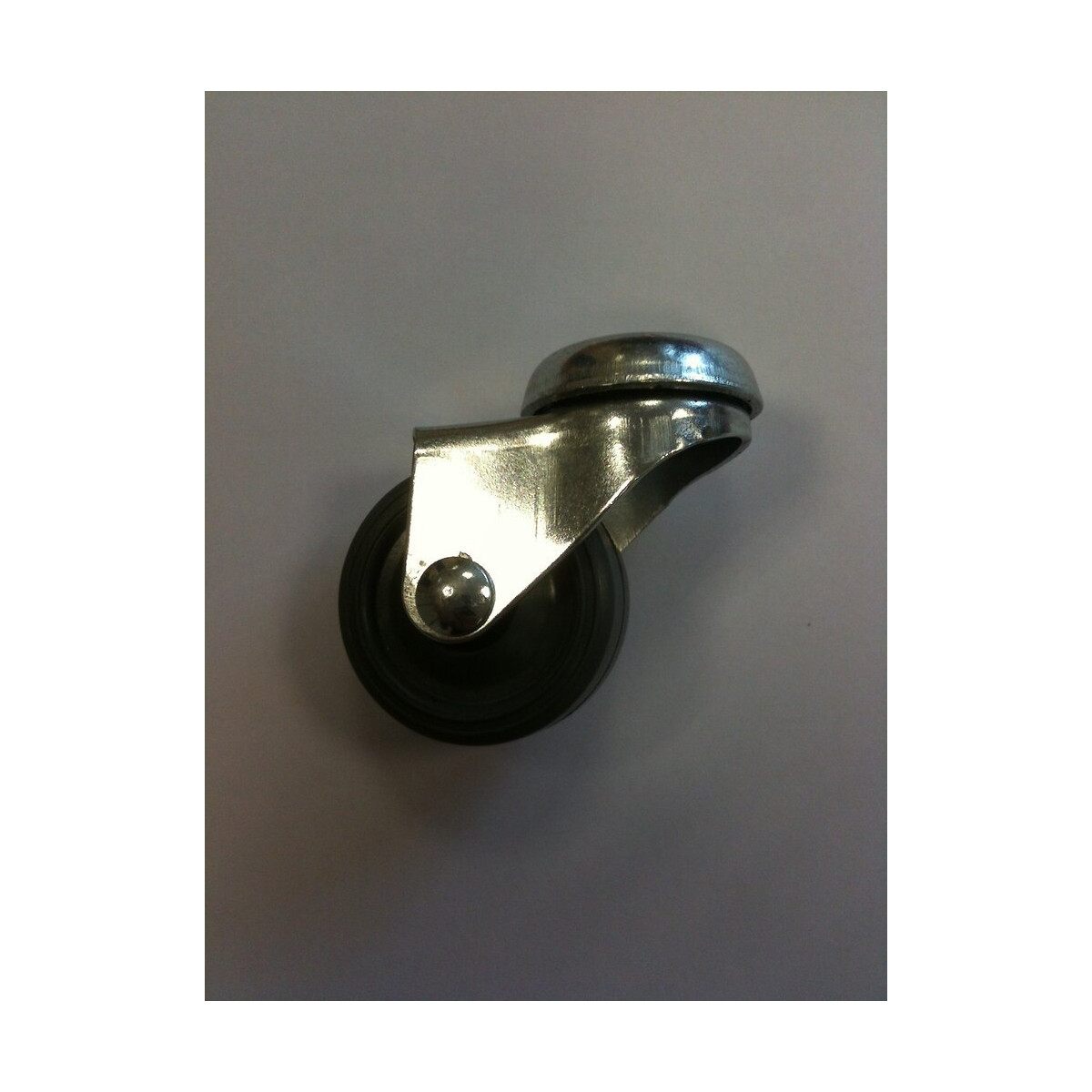 Roulette pivotante 46 mm haut. 35 mm diamètre à platine avec bandage caoutchouc gris, 20kg charge.Spécifications techniques