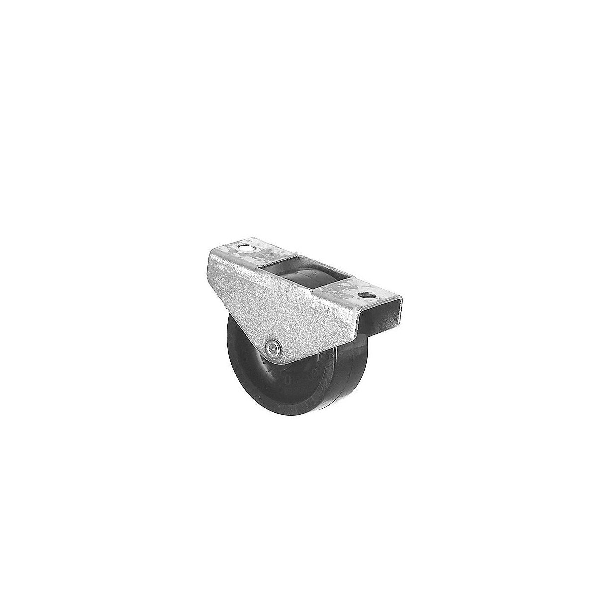 Roulette fixe 43 mm haut. 30 mm diamètre avec galet polypropylène gris et fixation par platine fixe, 15kg charge. Roulette pour appareils légers.Spécifications techniques