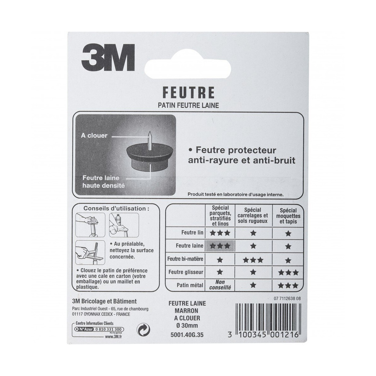 Spécial bois. Laine naturelle, protection haute densité. Réduction du bruit Patins disposant d'une protection en laine haute densité. Permettent de réduire le bruit de 30 décibels maximum. Fixation: A clouer Usage (patin, feutre, emboût): Protecteur(s) Sols adaptés: Parquets, stratifiés, linoleum Type de sol: Parquet Forme: Rond Diamètre (en mm): 30 Matière principale: Feutre Densité de la laine (en kg/m³): 175 Produit emballé : hauteur (en cm): 11.9 Produit emballé : largeur (en cm): 9.2 Produit emballé : profondeur (en cm): 3 Produit emballé : poids (en kg): 0.028