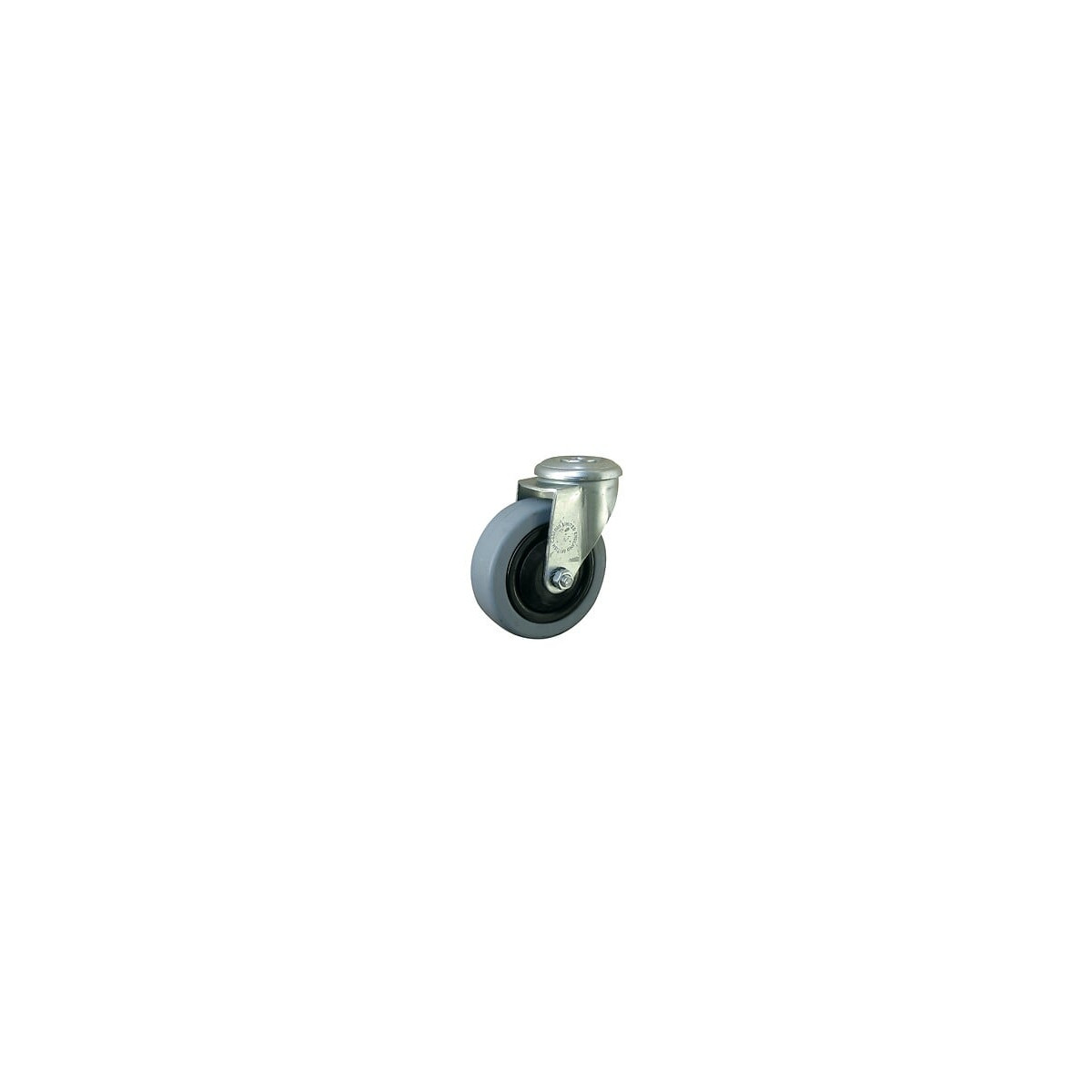 Roulette pivotante avec frein (œil Ø 10 mm). Diamètre / Charge : 100 mm / 85 kg. Bandage en caoutchouc sur jante en nylon.