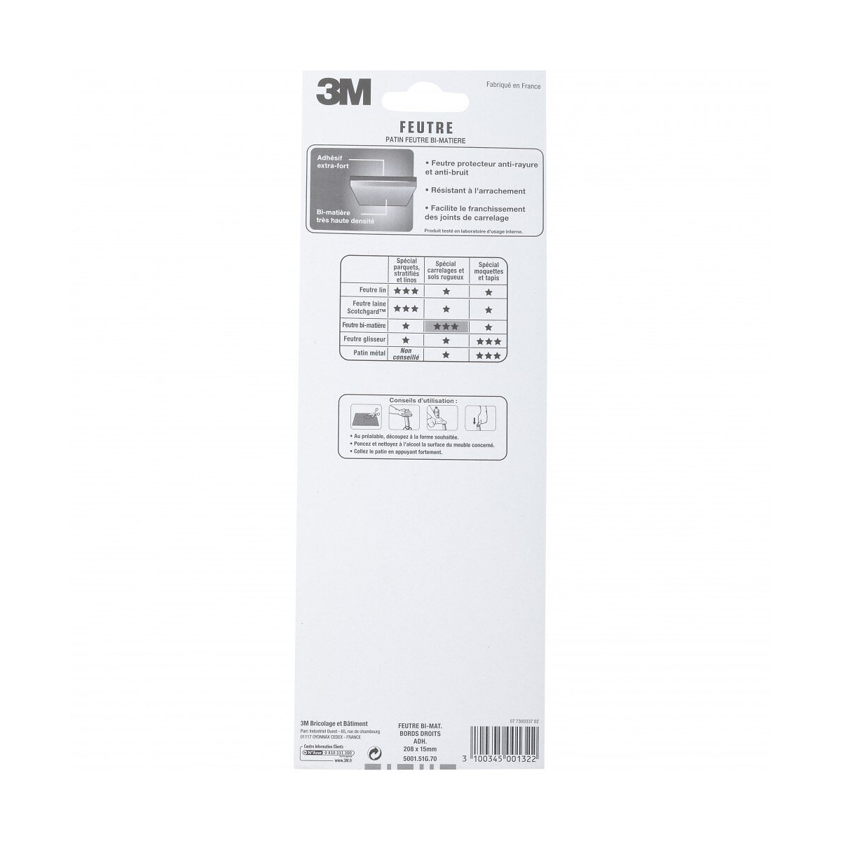Spécial carrelage et sol rugueux Patins en feutre à bords droits. Conçu en bi-matière très haute densité avec un adhésif extra fort. Permettent de réduire le bruit de 30 décibels maximum. Fixation: Adhésif Usage (patin, feutre, emboût): Protecteur(s) Sols adaptés: Carrelage, béton Type de sol: Carrelage Forme: Rectangulaire Largeur (en mm): 15 Longueur (en mm): 208 Epaisseur (en mm): 6 Matière principale: Feutre Densité de la laine (en kg/m³): 200 Produit emballé : hauteur (en cm): 26.3 Produit emballé : largeur (en cm): 9.3 Produit emballé : profondeur (en cm): 1.3 Produit emballé : poids (en kg): 0.044