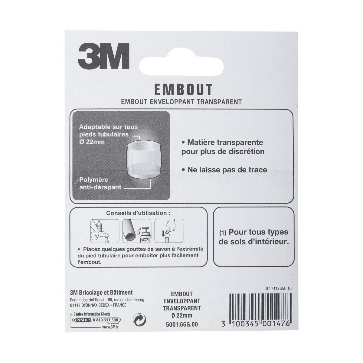 Spécial pieds tubulaires pleins et creux Embouts enveloppants discrets (transparents). Anti-bruit, anti-rayures et anti-traces. Fixation: A emboîter Forme: Rond Usage (patin, feutre, emboût): Antibruit Hauteur (en mm): 18 Diamètre (en mm): 22 Matière principale: Plastique Sols adaptés: Tous types de sol Fabrication "Union Européenne": Non Fabrication française: Non Produit emballé : hauteur (en cm): 11.9 Produit emballé : largeur (en cm): 9.3 Produit emballé : profondeur (en cm): 3.4 Produit emballé : poids (en kg): 0.036 Indication du geste de tri (triman): Nos produits et emballages peuvent faire l'objet d'une consigne de tri. Pour en savoir plus : www.quefairedemesdechets.fr