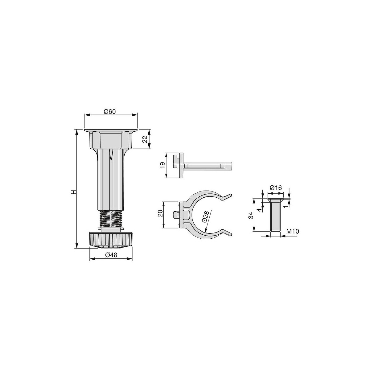 Les pieds réglables Bone pour modules bas de cuisine avec plinthe, élèvent les meubles pour les protéger de l’humidité et faciliter ainsi le nettoyage. Ils sont réglables en hauteur de -5 mm à +20 mm afin de corriger une éventuelle dénivellation du sol. Les pieds réglables Bone offrent une grande capacité de charge, jusqu'à 40 kg sous pression.Ils sont compatibles avec les plinthes en aluminium et en bois pour montage avec vis ou emboîtement.