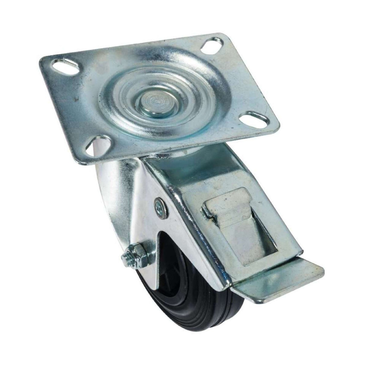 Informations produit: Roulette de manutention Werkapro Roue pivotante avec frein Diamètre de la roue: 100 mm Dimensions de la platine: 105 x 80 mm 2 couronnes de billes acier Alésage à rouleaux Bandage caoutchouc Charge maxi: 100 kg