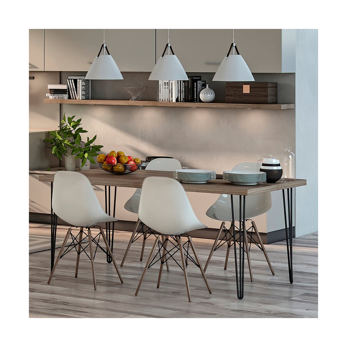 Jeu de 4 pieds de table en forme de tige circulaire, parfaits pour les tables multi-usage et de cuisine. Le pied fixe a une hauteur de 710 mm. Le montage se fait très simplement en vissant le pied au plateau de table grâce aux vis fournies. Des patins sont également fournis pour éviter de marquer le sol. Les pieds sont en acier et peints en noir ou en blanc.