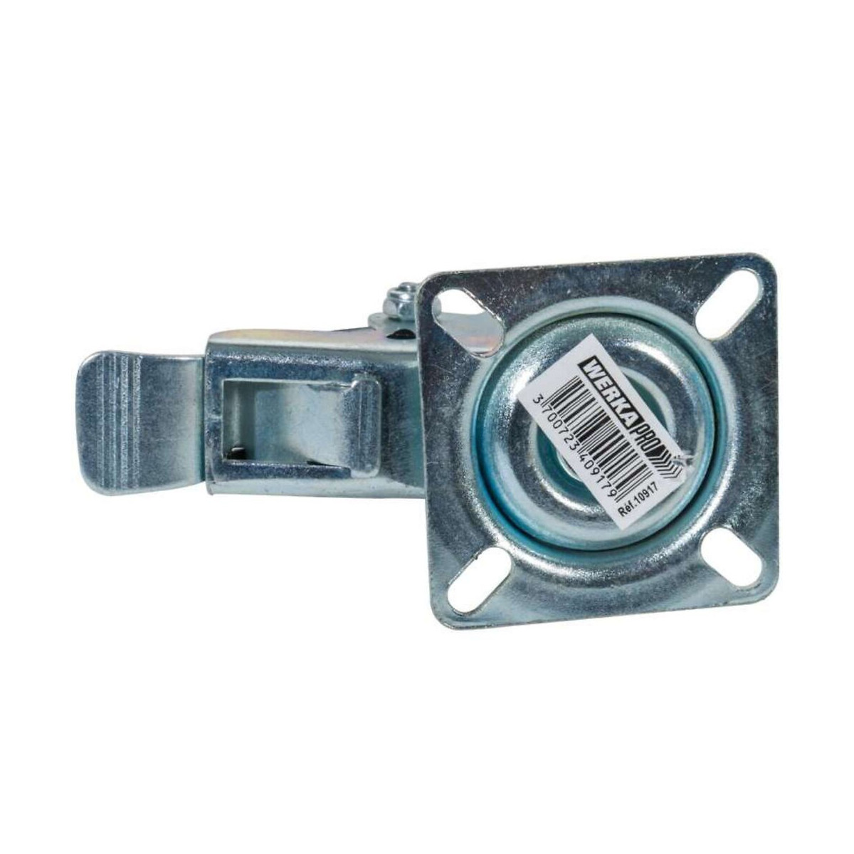 Informations produit: Roulette de manutention Werkapro Roue pivotante avec frein Diamètre de la roue: 50 mm Dimensions de la platine: 60 x 60 mm 2 couronnes de billes en acier Alésage à rouleaux Bandage caoutchouc Charge maxi: 40 kg