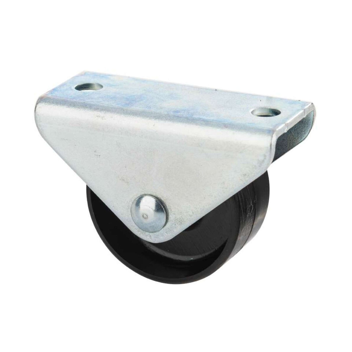 Fonctionnement silencieux, ne détériore et ne tache pas les sols, bonne résistance à l'usure. Monture en tôle d'acier emboutie. Platine rectangulaire à 2 trous. Spécificité de la roue galet matière polypropylène noir.
