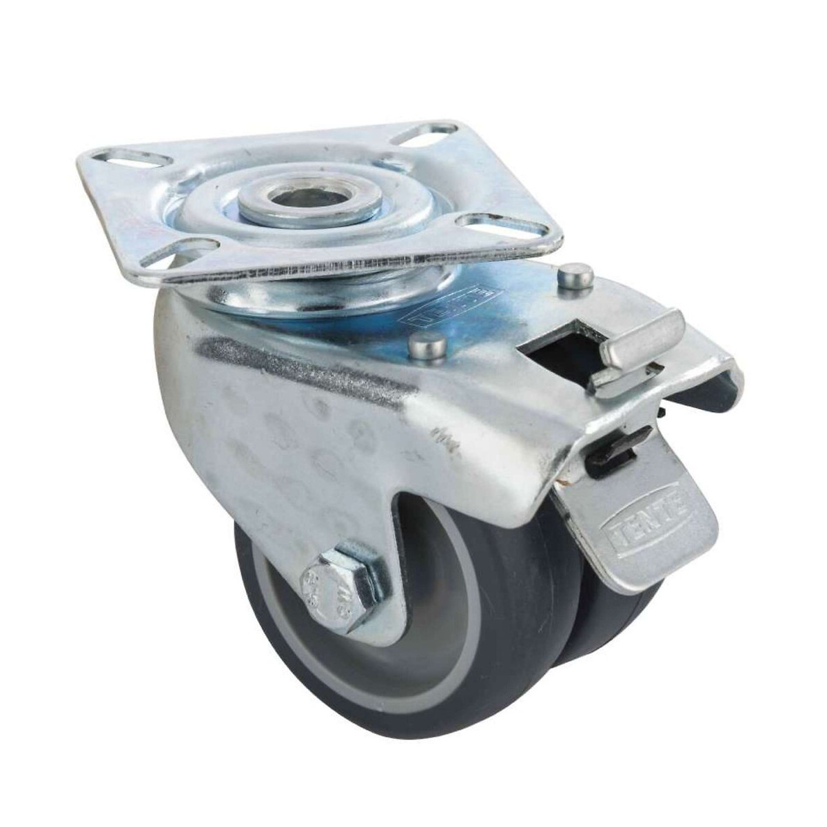 Caractéristiques: Charge maxi: 45 kg Bandage caoutchouc gris non marquante Ø 50 x 18 mm Type de fixation platine carrée à 4 trous 60 x 60 mm. Chape en tôle d'acier emboutie, protégée par zingage. Diamètre trou oblong de fixation 6mm. Déport 22 mm par rapport à l'axe de rotation de la roue. Moyeu de la roue lisse.