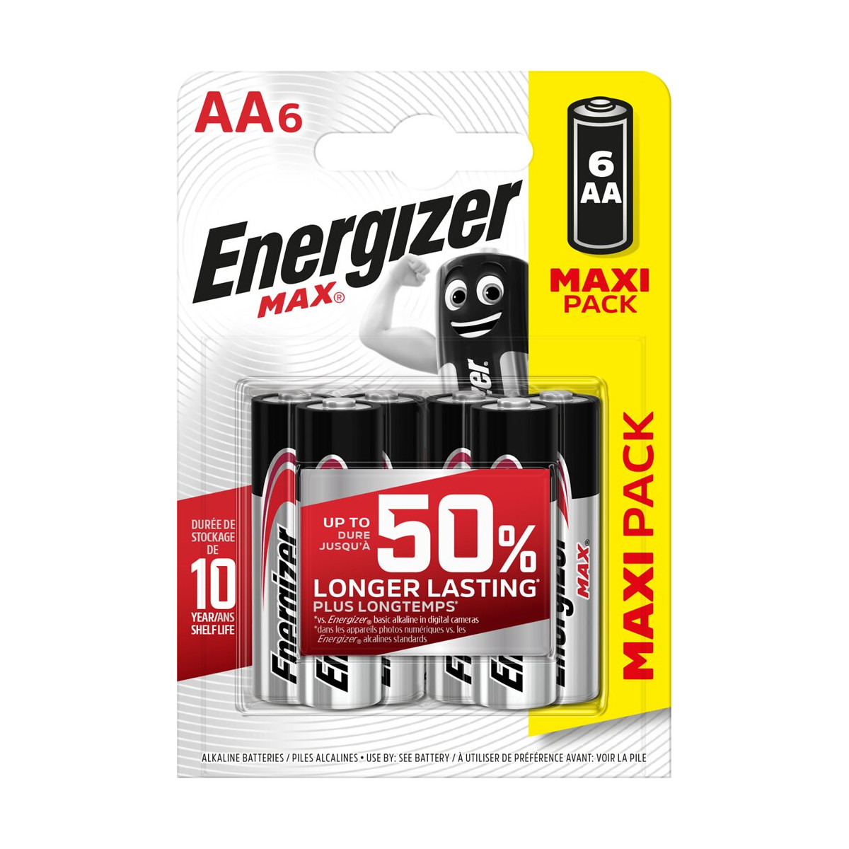 Piles Alcalines Energizer Max AA/LR6, pack de 6