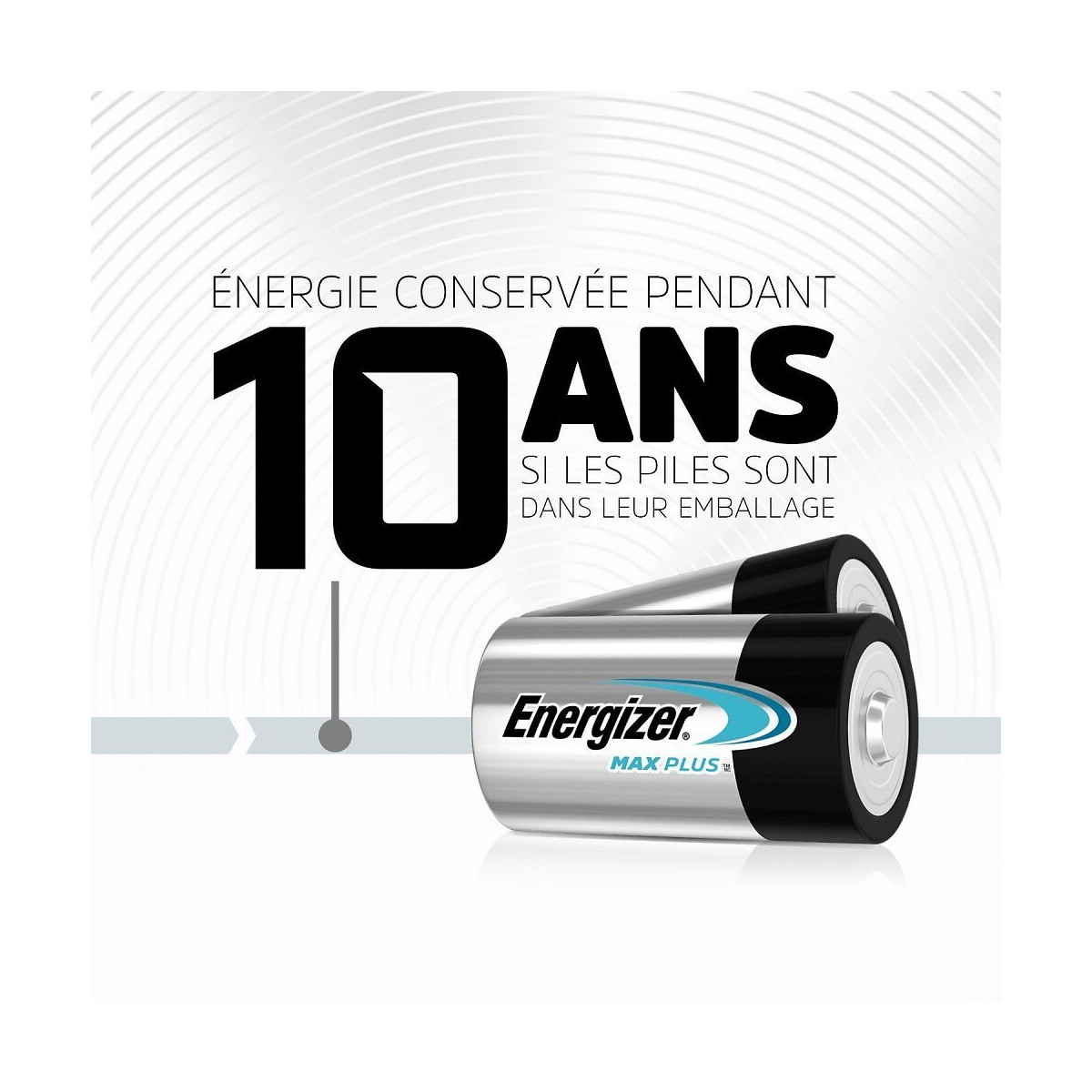 Dure jusqu’à 13% plus longtemps que les piles Energizer® EcoAdvanced™ AA** » + Densité d’énergie accrue + Matériaux supérieurs + Plus grand réservoir d’énergie Notre pile alcaline qui dure le plus longtemps, se stock 12 ans, garantie anti-coulures, plus d'énergie, moins de déchets Type de pile d'alimentation: Alcaline Nom du produit: Lot de 2 piles Nom des piles: LR20 D Nom de la série: Max plus Marque du produit: ENERGIZER Fréquence d'utilisation: Intensif Tension (en V): 1.5 Capacité (en mAh): 0 Matière principale: Zinc Nombre de piles: 2 Préchargé: Oui Produit emballé : poids (en kg): 0.286 Produit emballé : profondeur (en cm): 3.5 Produit emballé : largeur (en cm): 7.9 Produit emballé : hauteur (en cm): 11.2