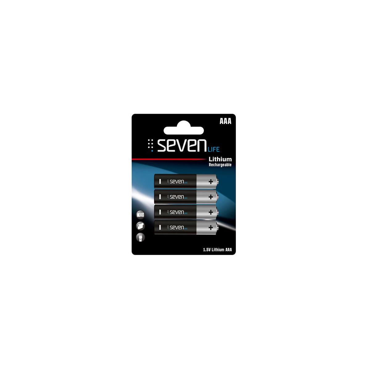 Les batteries rechargeable Lithium-ion Seven Life ont été spécialement développées pour offrir à l'utilisateur un voltage de 1.5V et offrent donc une compatibilité avec leur accessoires électroniques (Normalement les batteries Lithium-ion offrent du 3.7V) - Voltage : 1.5V - Capacité batterie : 220 mAh / 800 mWh - Type de batterie : Rechargeable Lihtium - Modèle : AAA - Quantité/pack : 4 piècesSpécifications techniques