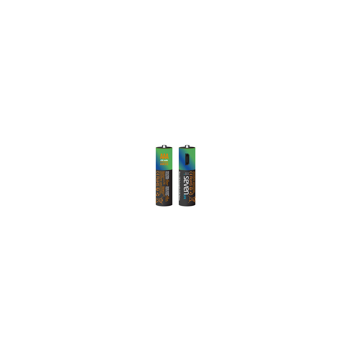 - Rechargeables 500 fois, les piles Seven Life permettent de réduire drastiquement la production des piles classiques. L’utilisation de métaux lourds (nickel, zinc, lithium...) est un réel problème pour l’environnement et l’optimisation de ces batteries apporte une solution concrète. Fini les anciens blocs de rechargement ! Conditionnées par 4, ces piles AAA fonctionnelles et faciles d’utilisation. Elles se rechargent n’importe où via une prise secteur pourvu d’un port USB, via un adaptateur-prise classique USB présent sur tous les chargeurs de smartphone, via une Powerbank, via un chargeur universel de piles rechargeables ou encore en voiture via un chargeur allume-cigare pourvu d’une prise USB. Avec un temps de charge de 5h, il est possible de recharger jusqu’à 2 batteries en même temps avec son câble double micro usb inclus. Le témoin LED lumineux passe du rouge au bleu afin de savoir facilement quand la pile est rechargée. D’une capacité de 450 mAh, ces batteries sont idéales pour les appareils photos, jouets, télécommandes, rasoirs électriques, souris radio, horloges, claviers, lampes de poche, etc. - Pack de 4 piles - Format : AAA - HR03 - Indicateur de charge par LED - Cable double micro USB - Tension nominale : 1.2V - Durée de charge : 5h - Courant de chargement : 5V/80mAh - Poids produit : 30g pour 4 piles - Dimensions produit : 11 x 11 x 44mm (1pile) - Dimensions packaging : 144 x 99 x 20 mmSpécifications techniques